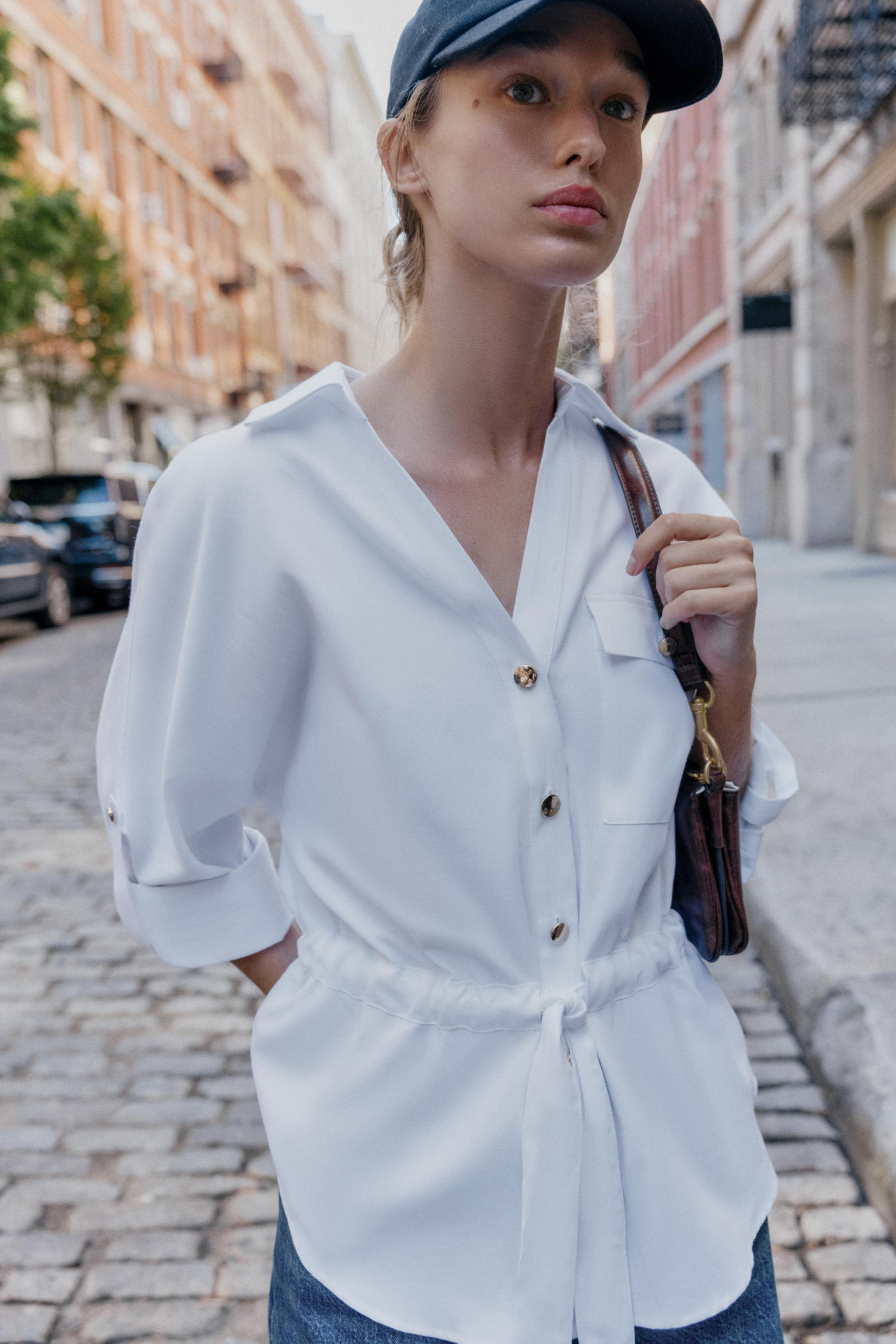 Safarî poplin gömlek, temiz hatlar ve sade detaylarıyla her zaman kalmaya değer bir parçadır. Beyaz tisortle ve yüksek bel jeans ile kombinlemeyle rahatça ofis-sonrasi bulusmalara da uygun hale getirebilirsin. Uzun gövdeli tiplere idealdir çünkü dengeli bir boyut sunar. Yazın açık havada yürüyüşlerde veya sonbaharda hafif bir ceketin altına giyilebilir. Siyah deri kemer ve beyaz sneaker ile tamamlayarak modern bir look elde edebilirsin. Kuru temizlik önerilir; katlanmadan asmalı ve iç katman olarak da kullanılabilir.