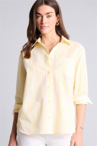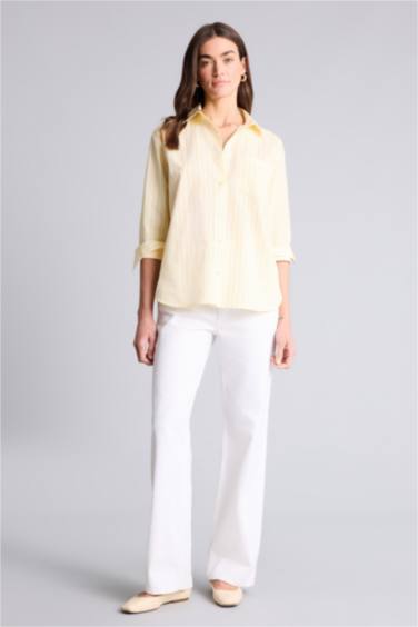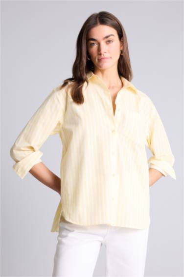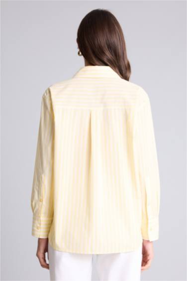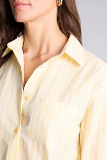 Oversıze Gömlek Yaka Çizgili Poplin Uzun Kollu Gömlek