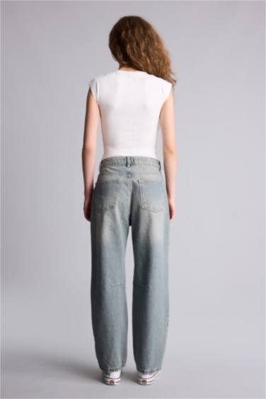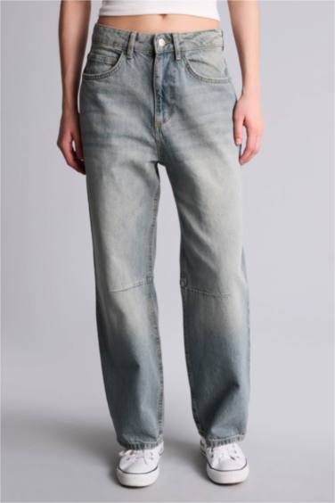 Barrel Fıt Yüksek Bel Bilek Boy Jean Yıkamalı Pantolon