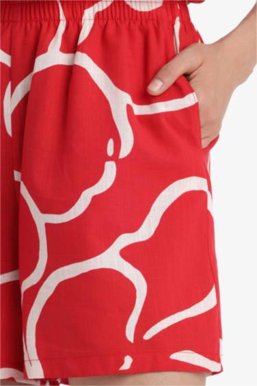 %100 Pamuk Normal Bel Desenli Kısa Paça Şort