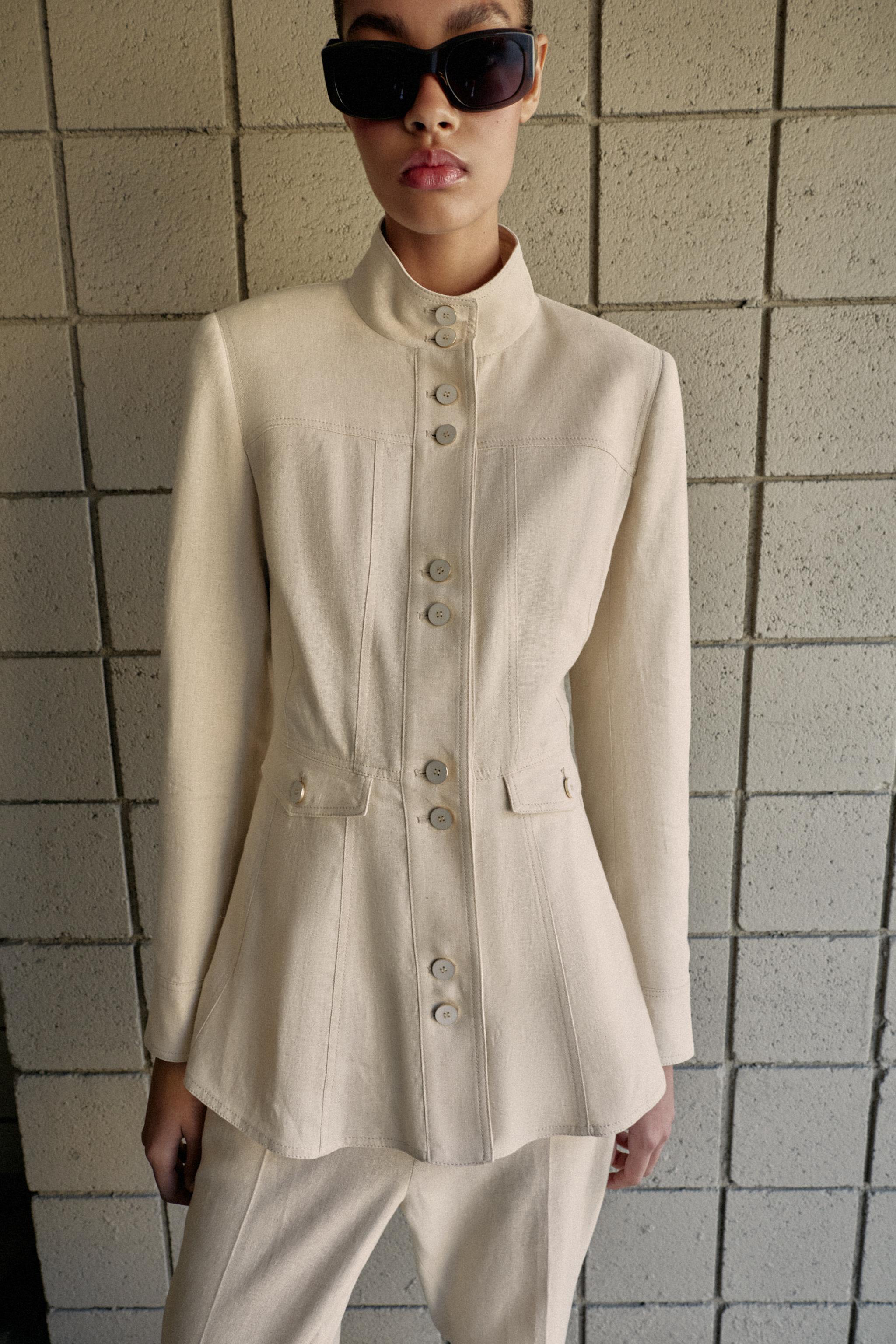 Beige ve krem tonlariyla sadece temizlik degil, dengeli bir estetik de sunan bu keten ceket, minimalist tarzda giyim arayanlar icin kusursuz bir secim. Uzun govdeli tipler icin ideal olan bu ceket, omuz hizasinda kesimle vucudun dogru orantilarini ortaya koyuyor. Beyaz tisortle ve yuksek bel jean ile kombinleme yaparsanız, gundelik bir konfora ek olarak hafif bir preppy his de katmis olursunuz. Aynı zamanda, klasik bir bluzla ve siyah kemerli pantolonla ofis-sonrasi bir bulusmada da etkili olabilirsiniz. Krem rengiyle uyumlu olan aksesuarlar, beyaz sneaker veya basit bir ayakkabi ile tamamlayabilirsiniz. Ceketi katlanmadan asmali, havalandirici dokusu sayesinde yazdan sonbahara kadar kullanabilirsiniz. İç katman olarak da kullanılabilir, baska bir parca olmadan da yeterli olur.