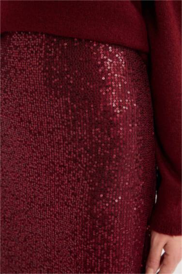 A Kesim Normal Bel Payetli Kumaş Maxi Etek