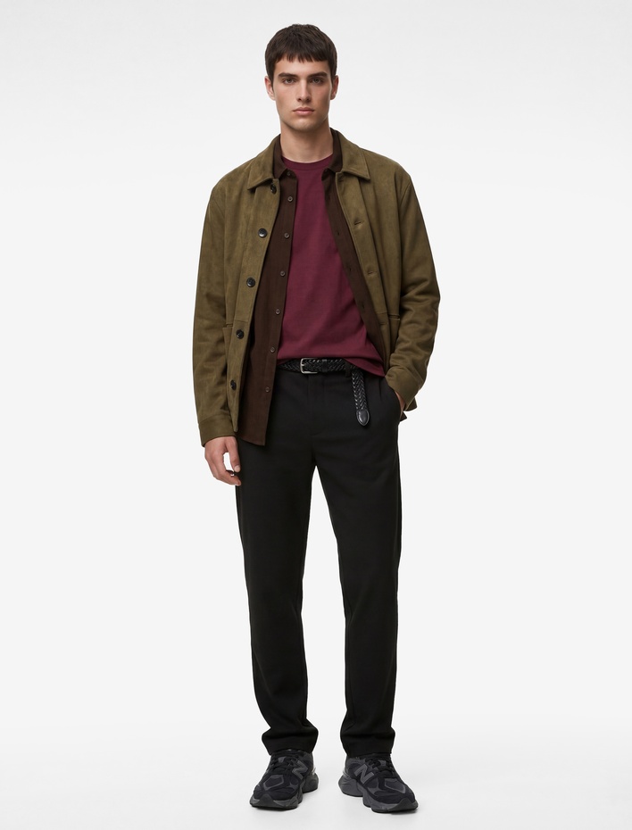 Bu uzun kollu gömlek yaka cepli düğmeli suni süet ceket, temiz ve sade bir estetikle dikkat çeker. Klasik detaylarla modern bir dokunuş sağlayan bu ceket, her gün giyilebilir ama aynı zamanda özel anlara da uygun hale getirebilecek bir dengede. Beyaz tisortle ve yüksek bel jeans ile kombinleme yaparsanız, günlük yaşamın rahatlığını korurken stilinizi de korumuş olursunuz. Aynı ceketi, siyah pantolon ve düz yaka tişörtle de ofis-sonrasi bulusmalarda kullanabilirsiniz. Uzun gövdeli tipler için idealdir çünkü vücut hatlarını dengeler ve daha dikkat çekici hale getirir. Açık koyu tonlarda olan renkleri, sonbahar ve kış mevsimlerinde özellikle etkili. Olive rengini, açık mavi jeans ve kahverengi ayakkabıyla tamamlayabilirsiniz. Maroon rengi ise biraz daha cesur bir look isteyenler için iyi bir tercihtir. Ceketin iç katman olarak da kullanılabilmesi, sıcak havalarda da şık görünmenizi sağlar. Asılı tutulması ve düzenli olarak buzdolabında saklanması, malzemenin ömrünü uzatacaktır.