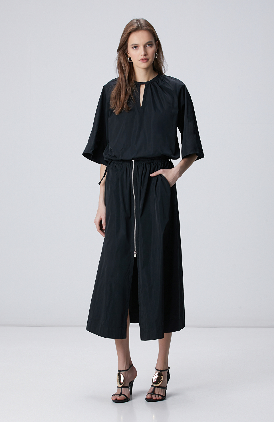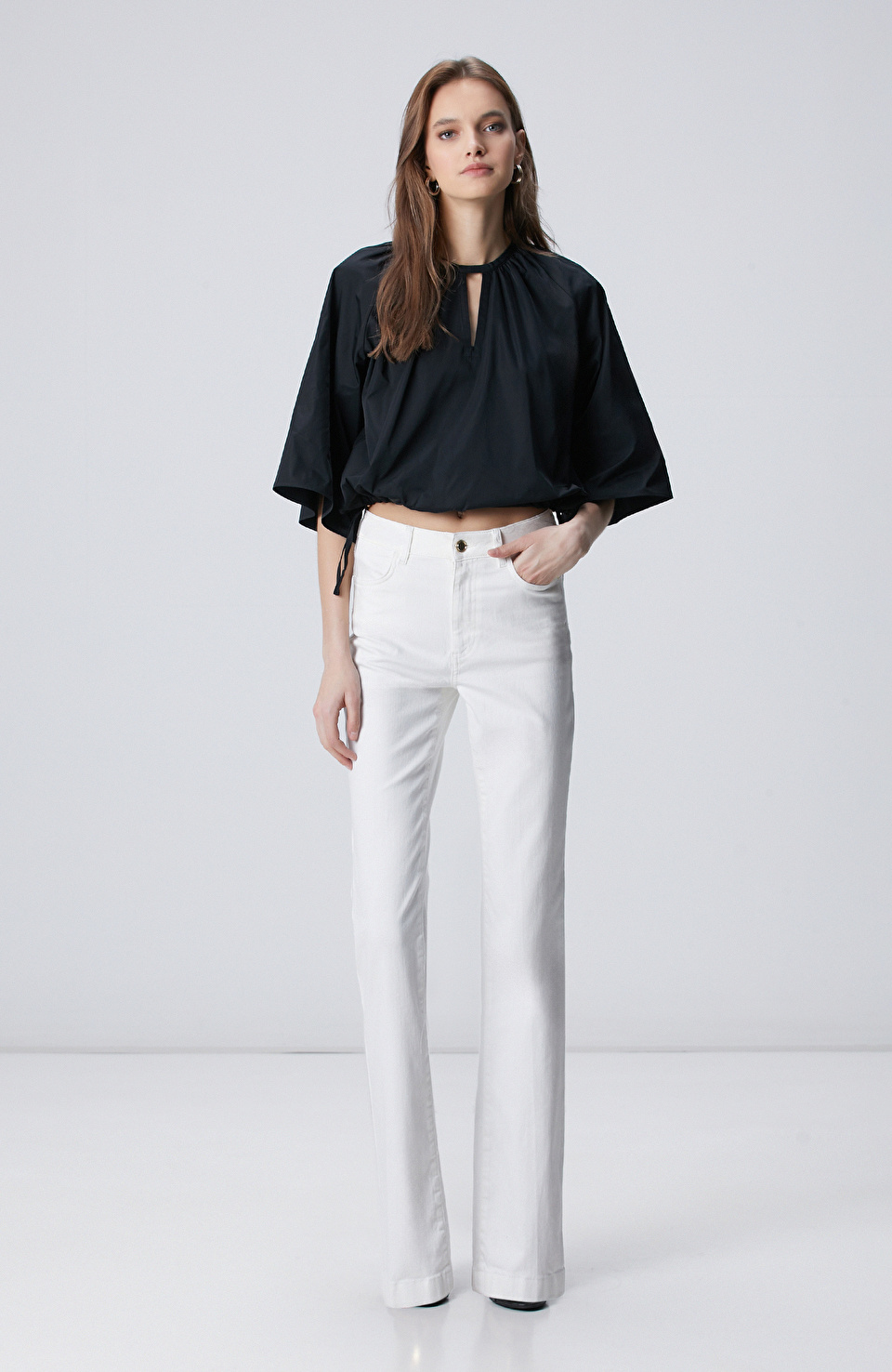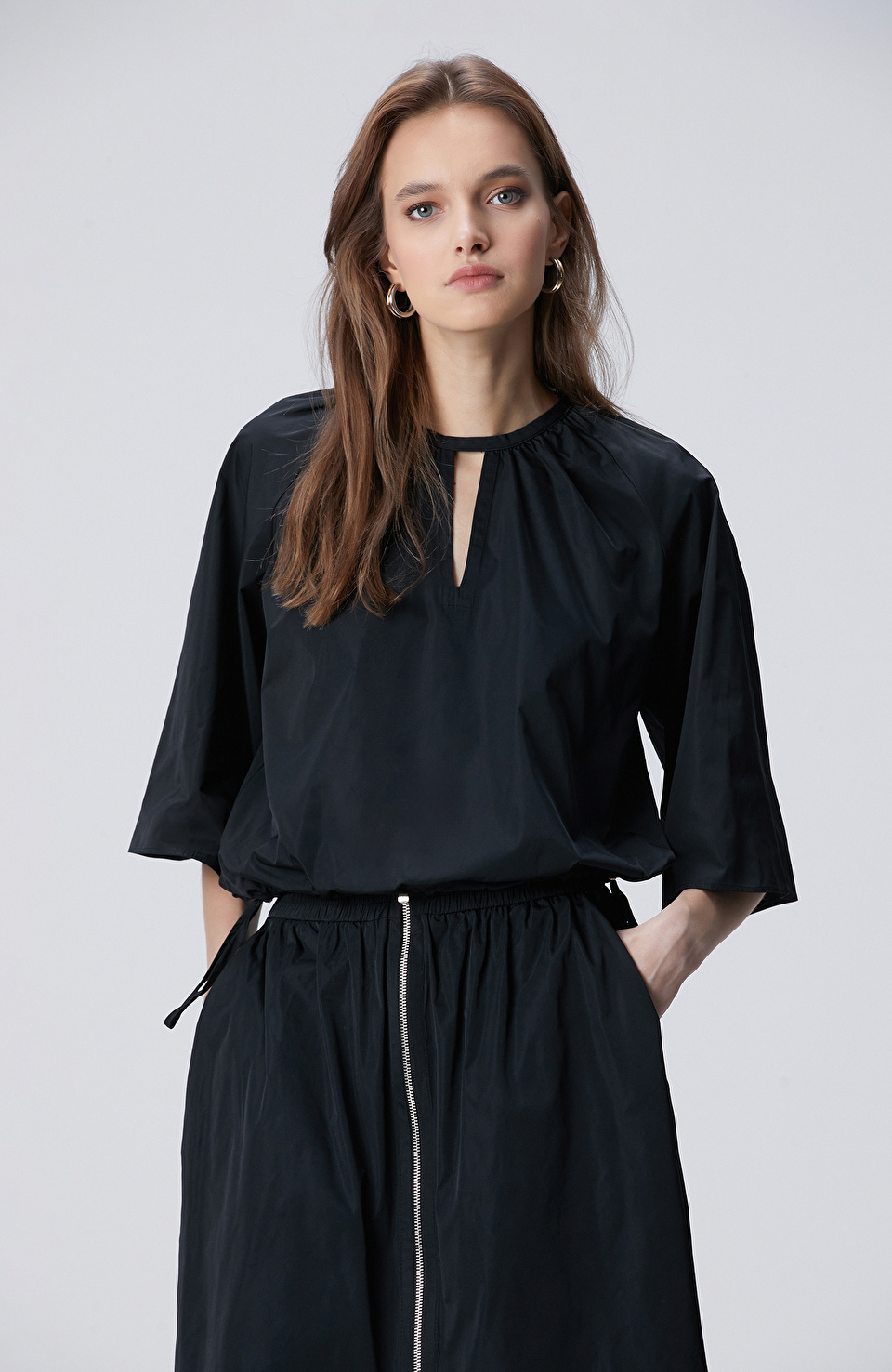 Siyah Crop Tafta Bluz