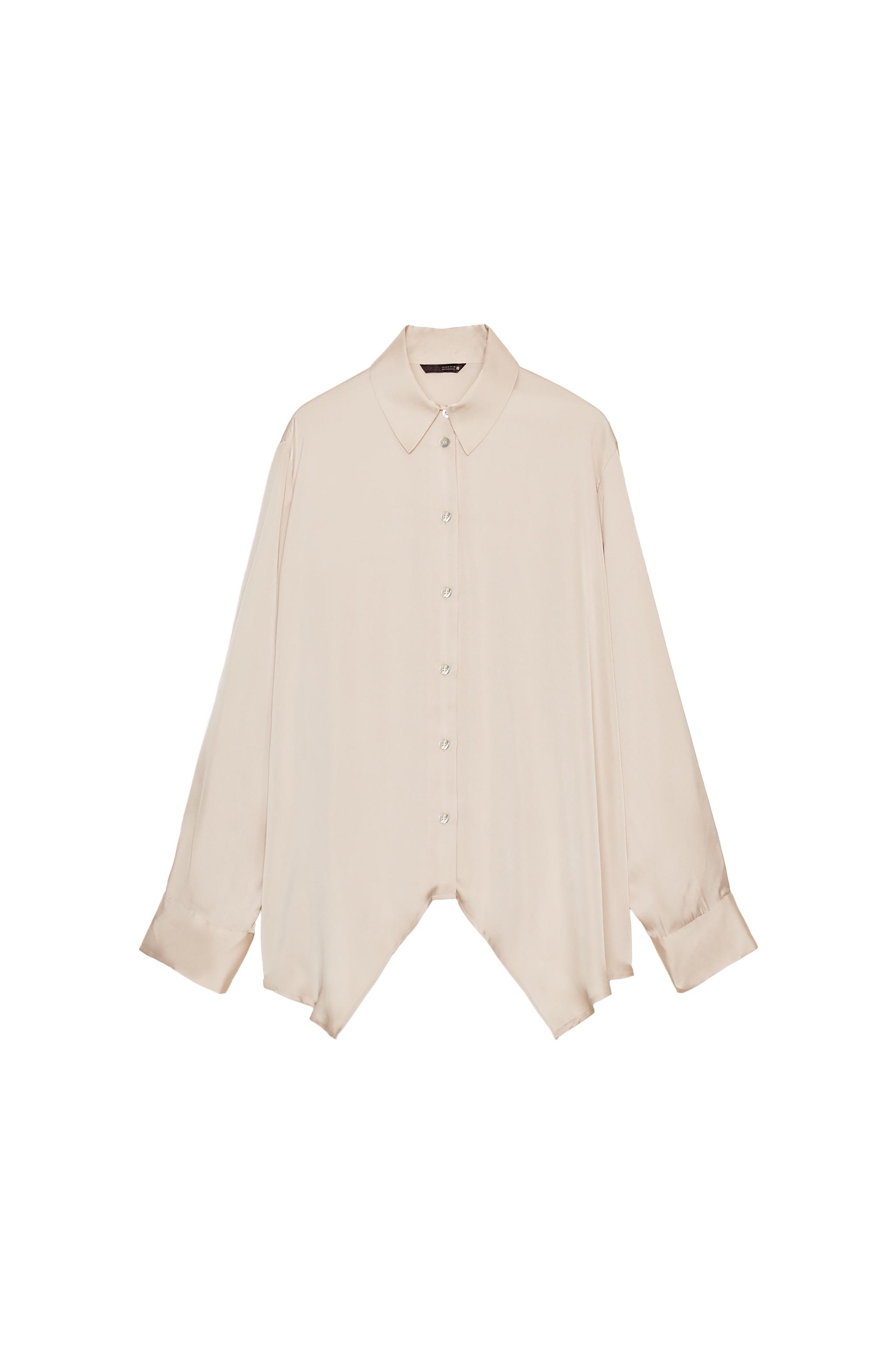 ASYMMETRIC HEM SATIN SHIRT
