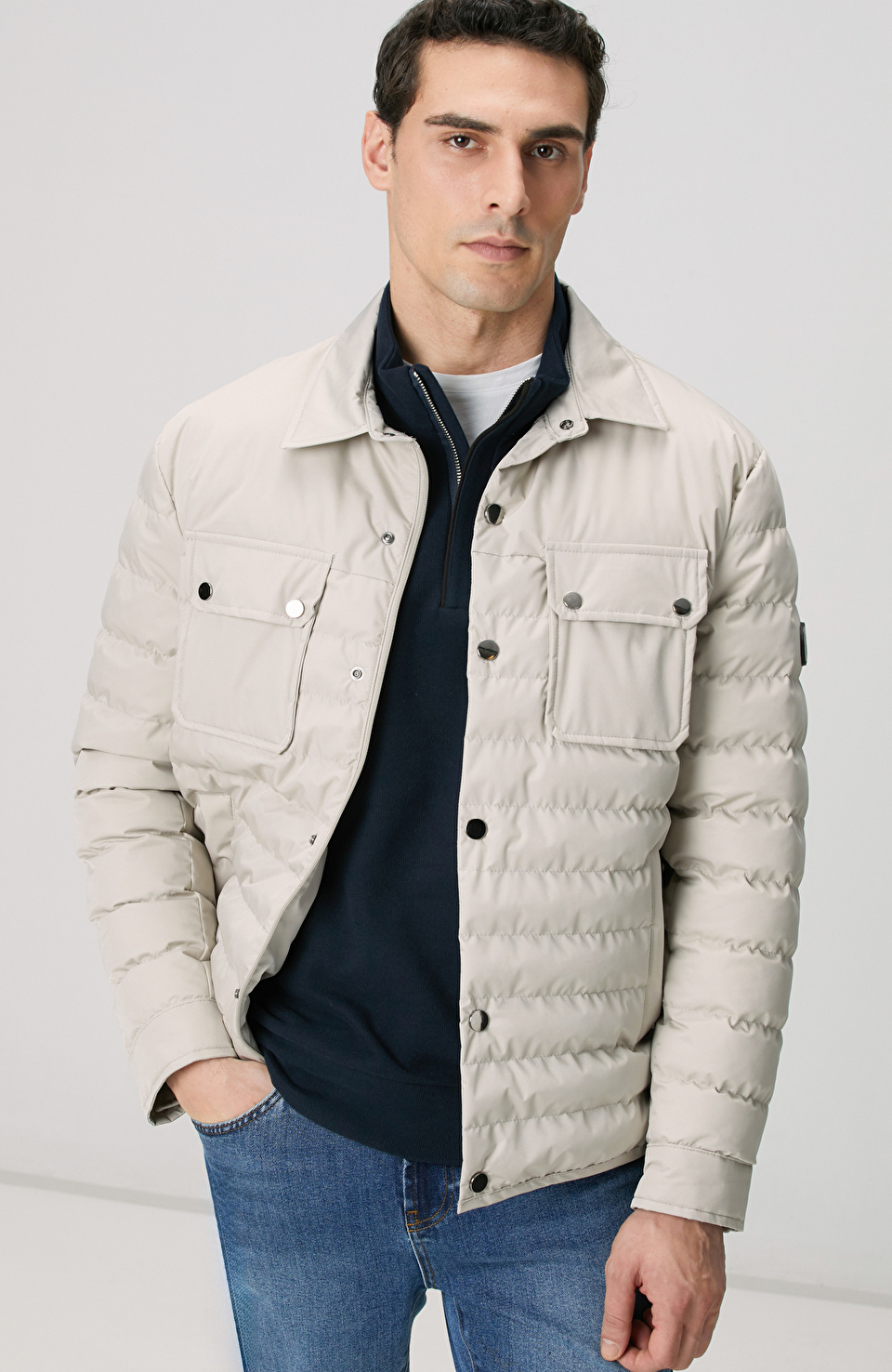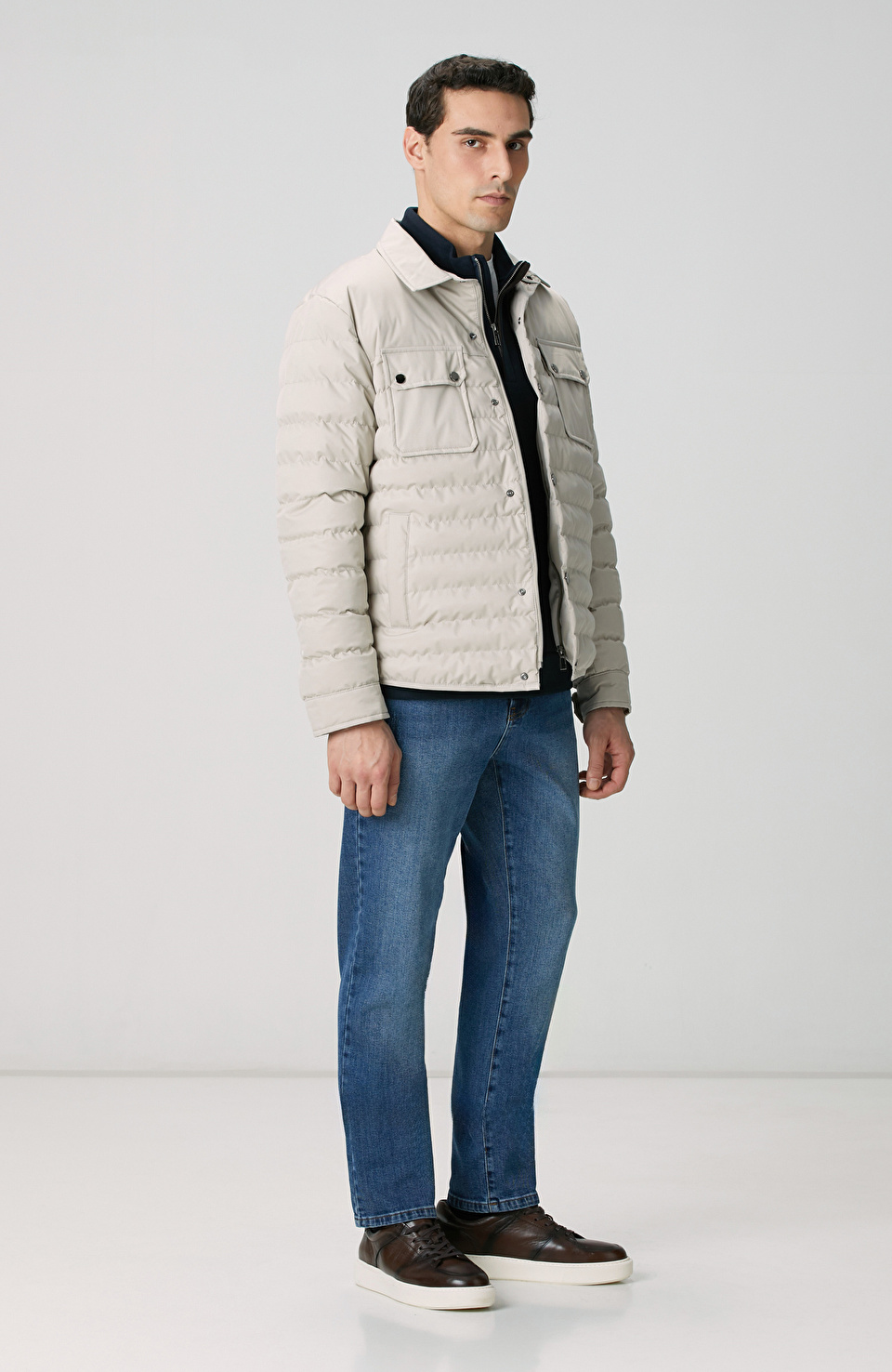 Bej Yan Cep Detaylı Kapitone Coat Ceket