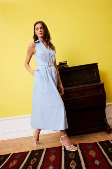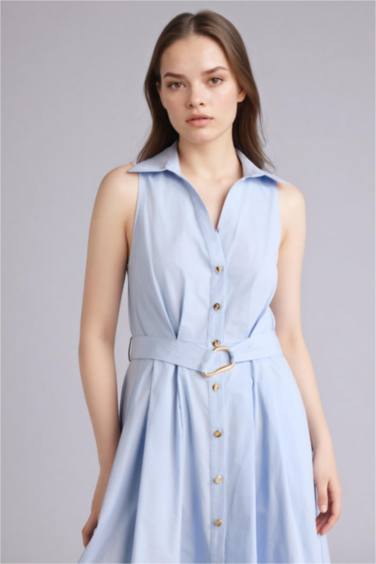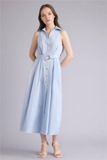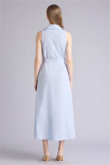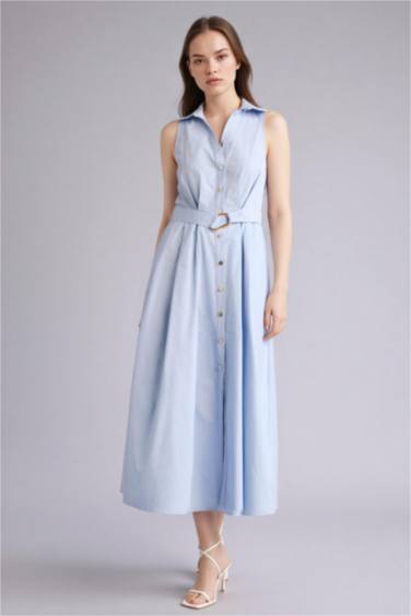Regular Fıt Hakim Yaka Pamuklu Kısa Kollu Uzun Elbise