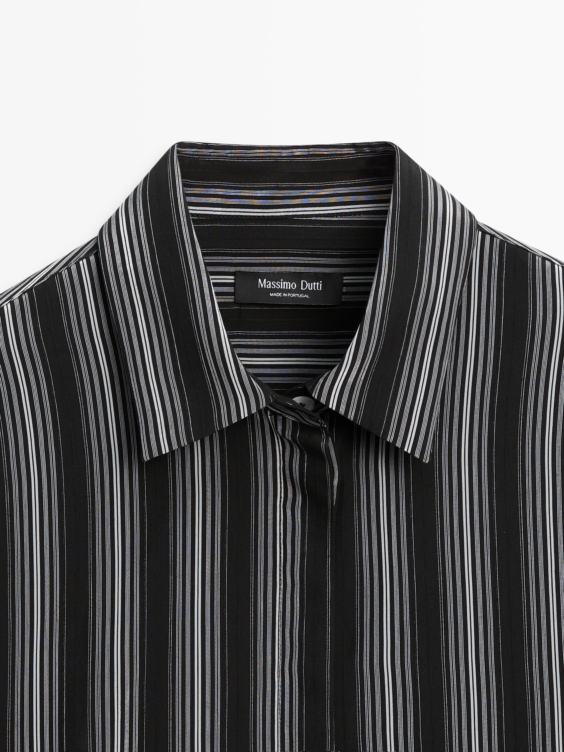 Çizgili detaylı dökümlü gömlek