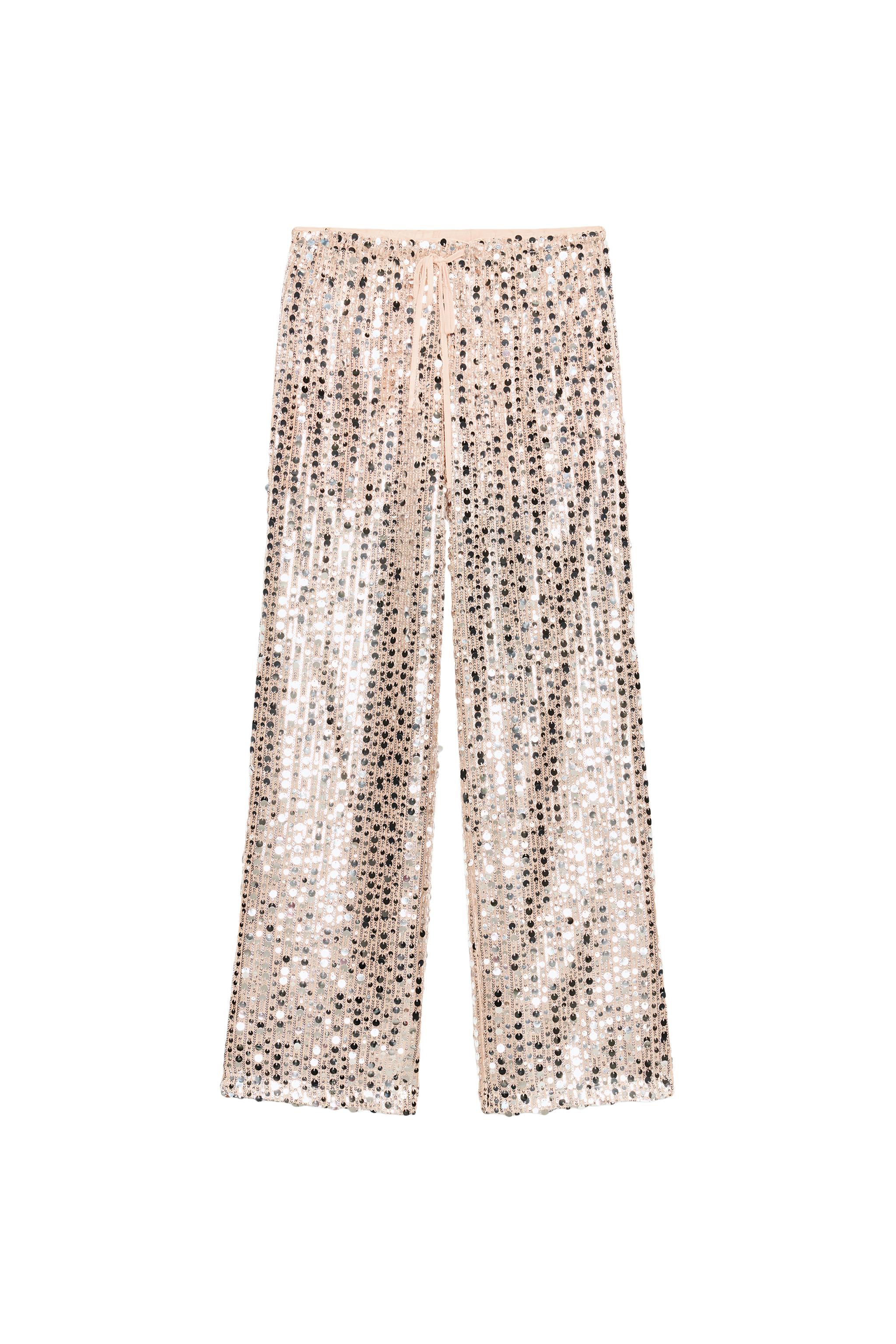 Bu pullu dokümlü pantolon, her zaman biraz daha şıklık yaratmak isteyenler için harika bir seçim. Uzun gövdeli tipler için idealdir çünkü dengeli bir hattı var ve bel kısmında hafif bir kıvrımla vücut hatlarını rahatlatır. Aşırı genis omuzlara sahip olanlar için ise etekli kıyafetlerle birlikte giyilerek denge sağlanabilir. Yazdan sonbahara kadar süren mevsimlerde hem gece partilerinde hem de tatil günlerinde uygun bir seçeneği olur. Beyaz t-shirt ve yüksek bel jeans ile casual bir look oluşturabilirsin; aynı zamanda siyah bir bluz ve açık renk bir çanta ile daha şık bir akşam kombinini tamamlayabilirsin. Renk olarak rose gold ve silver, ışık altında çok etkili olurken, beige ise doğal ve sade bir görünüm sunar. Açık ayaklık veya beyaz sneakerla basit ama etkili bir detay ekleyebilirsin. Kullanmadığında asılı tutarak katlanmamasına dikkat edersen, uzun ömürlü kalır. Aynı zamanda iç kıyafet olarak da kullanılabilir; bol kalıp sayesinde zorlamadan rahat hissedersin.