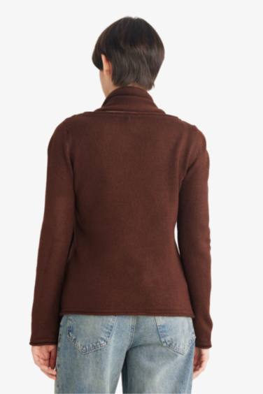 Regular Fit Kayık Yaka Yumuşak Dokulu Şal Detaylı Triko Kazak