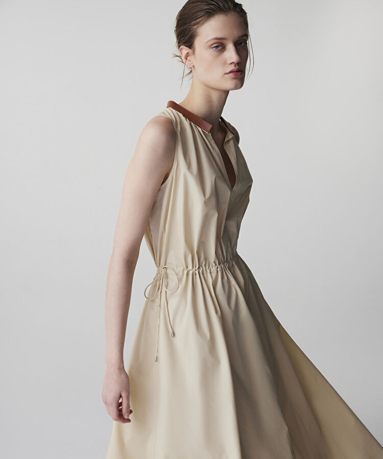 Kontrast yaka poplin elbise
