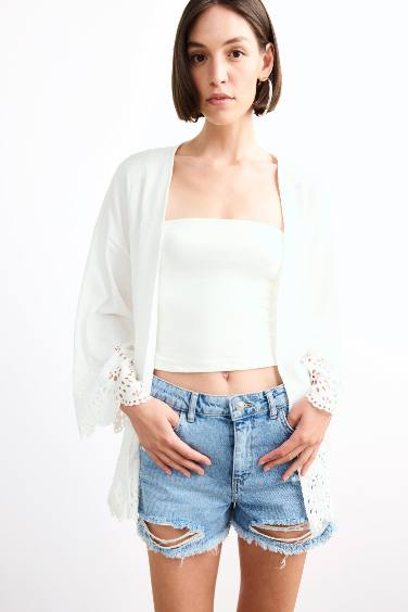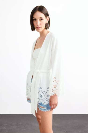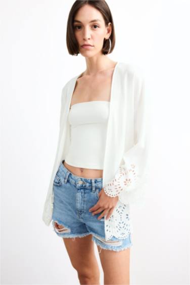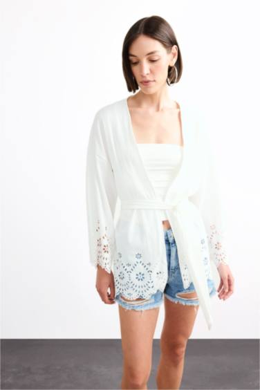 Fitted Bürümcük Brode Bağlamalı Uzun Kollu Bluz