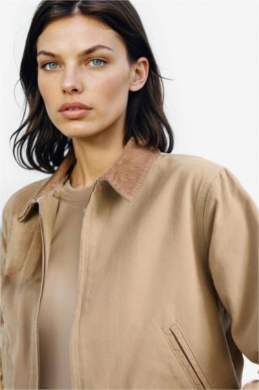 %100 Pamuk Regular Fıt Kontrast Yakalı Cepli Ceket Mont