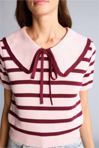 Crop Büyük Yaka Çizgili Kazak