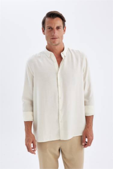 Relax Fit Polo Yaka Poplin Modal Basic Düz Uzun Kollu Gömlek