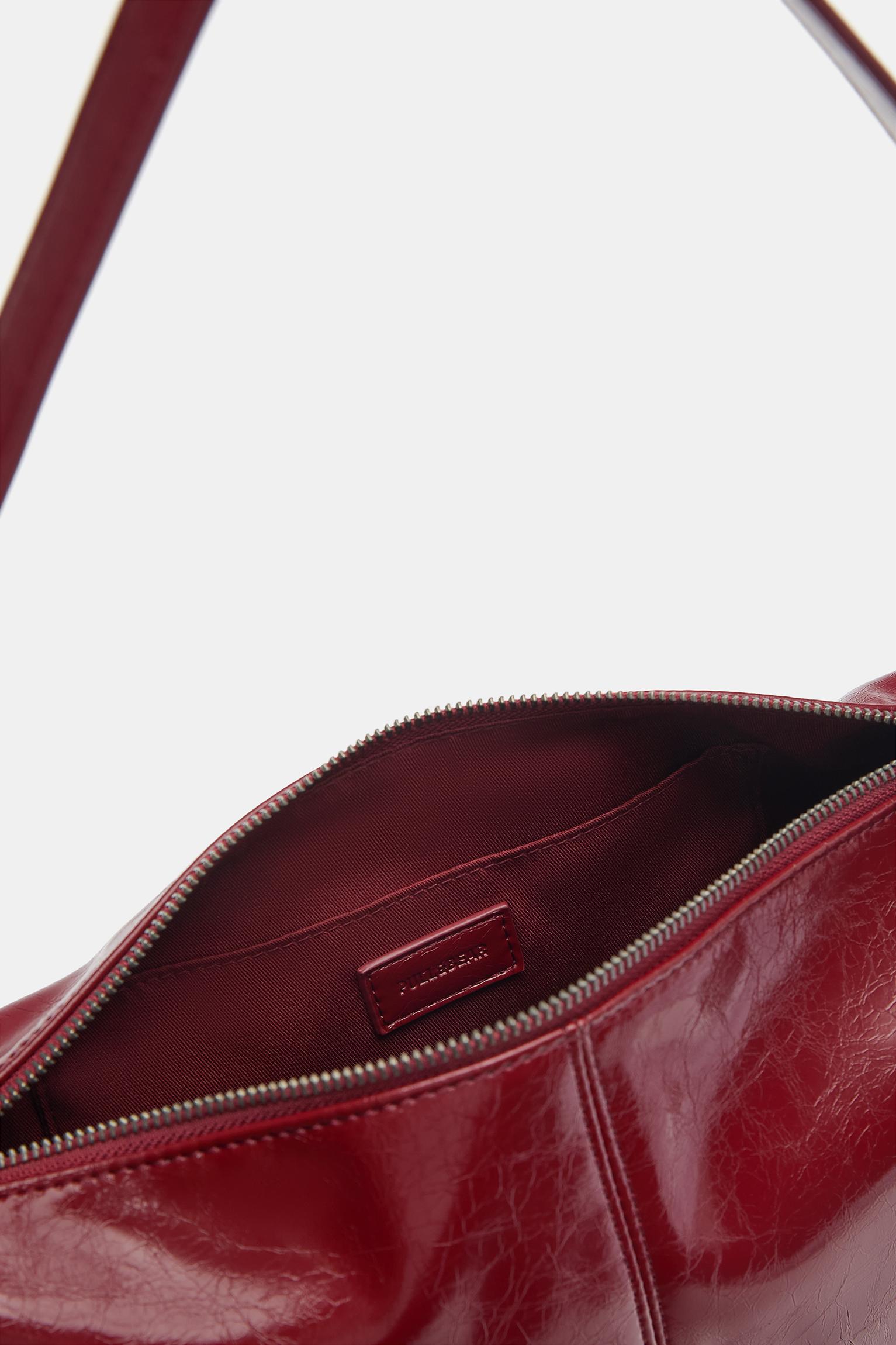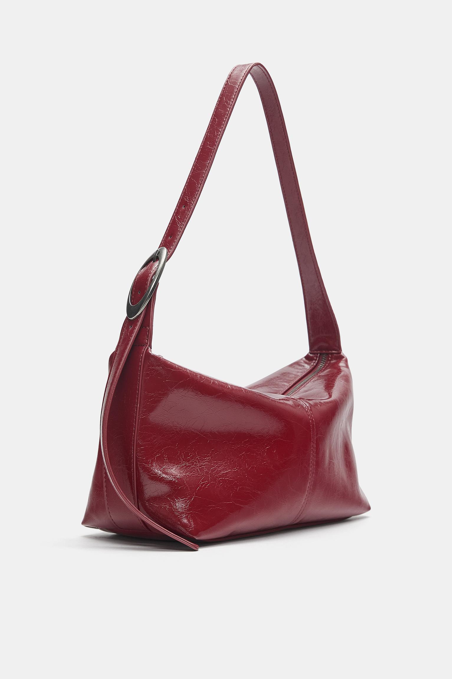 Kırmızı renkte omuz çantası. Sapta toka detaylı. Kısa omuz askılı. Fermuar kapamalı. <br/><br/>Yükseklik x Genişlik x Derinlik: 17,8 x 33,3 x 14 cm.