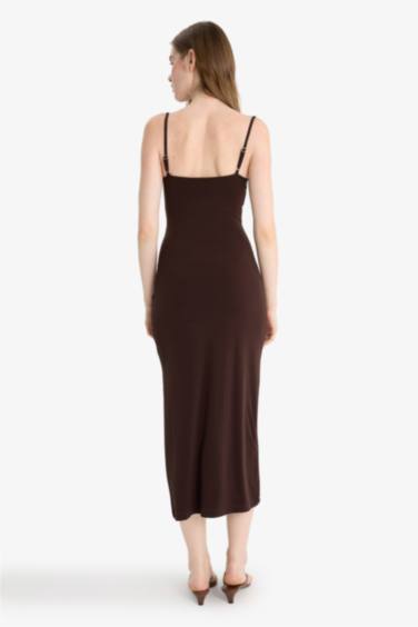 Bodycon Vücudu Saran Askılı Midi Elbise