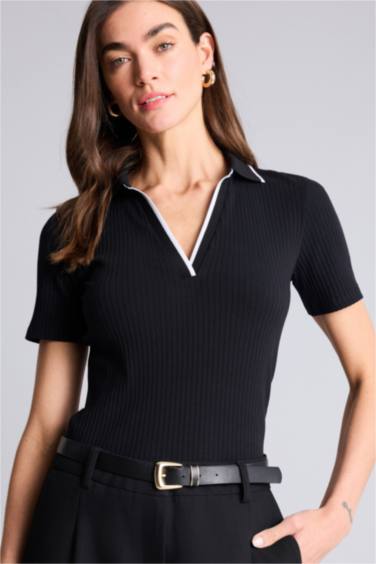 Slım Fıt Polo Yaka Fitilli Kaşkorse Tişört