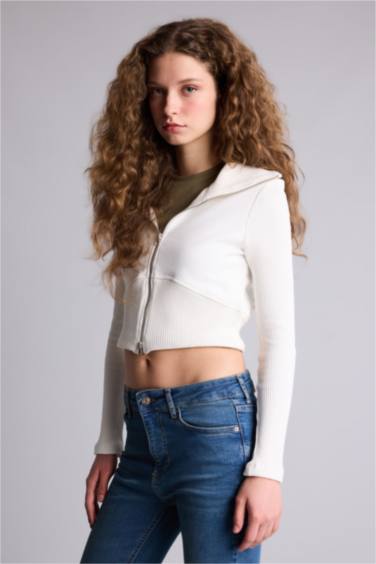 Fıtted Kapüşonlu Kalın Kumaş Hırka