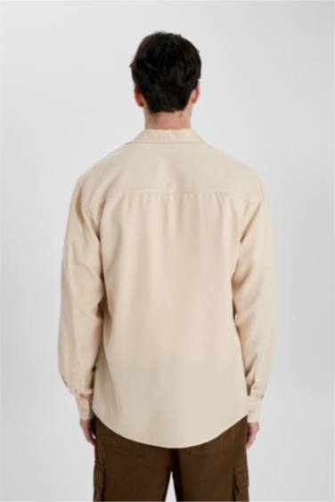 -%60Regular Fit Basic Düz Akışkan Kumaş Uzun Kollu Gömlek