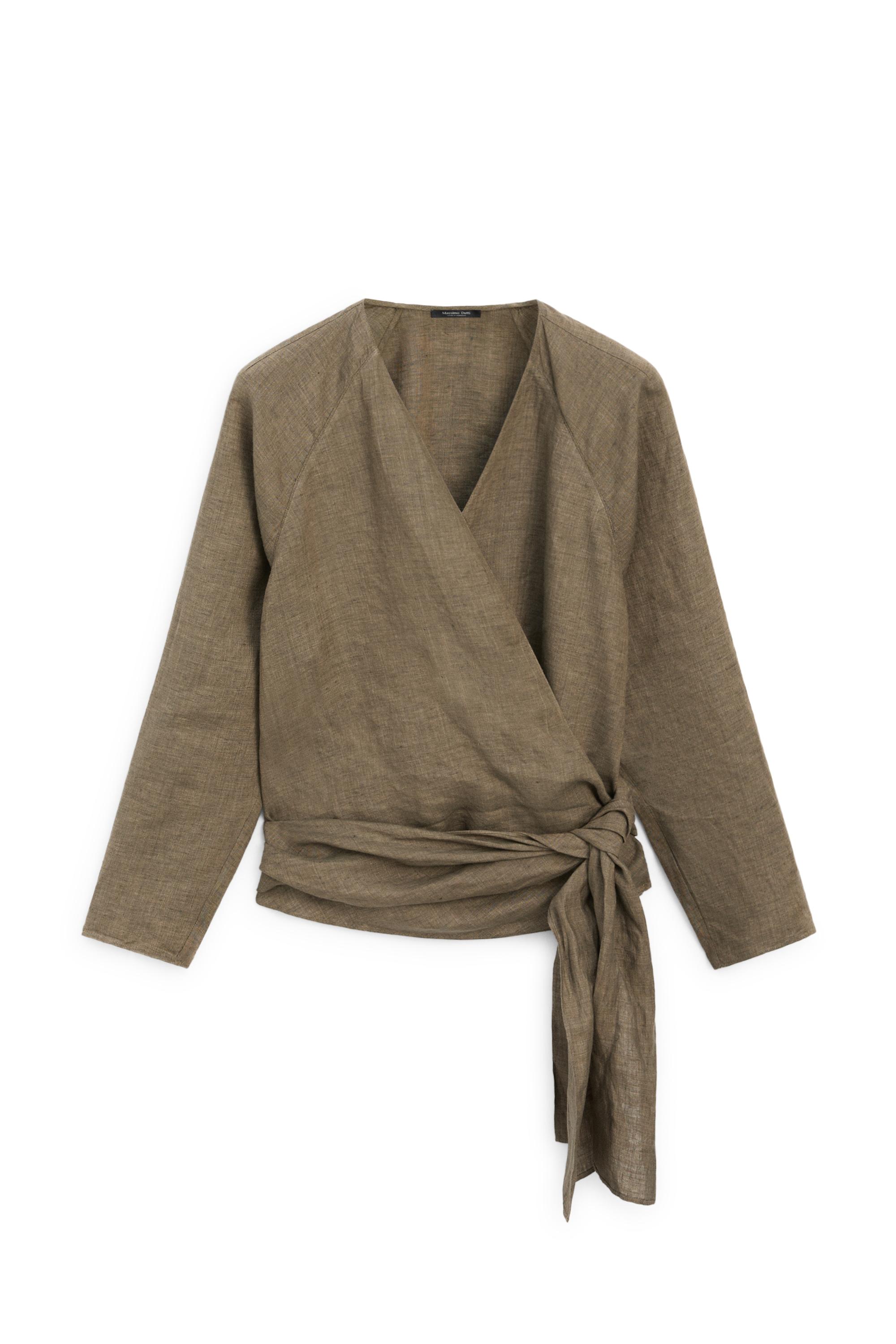 Keten bağcık detaylı gömlek