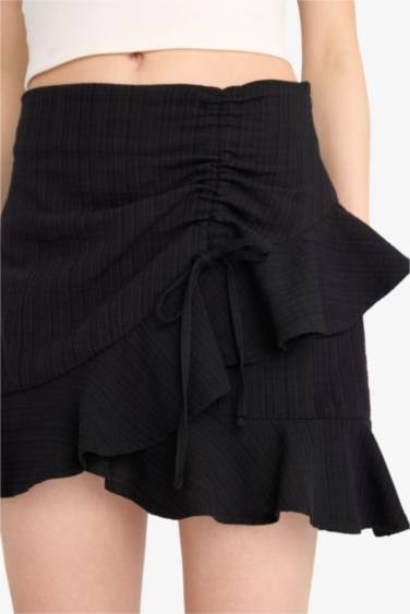Normal Bel Basic Düz Keten Görünümlü Volanlı Mini Etek