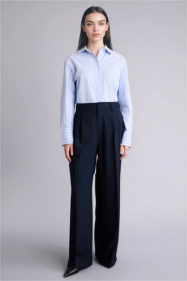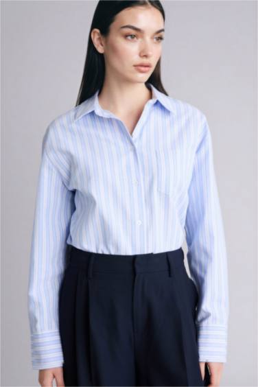 %100 Pamuk Oversıze Gömlek Yaka Çizgili Oxford Gömlek