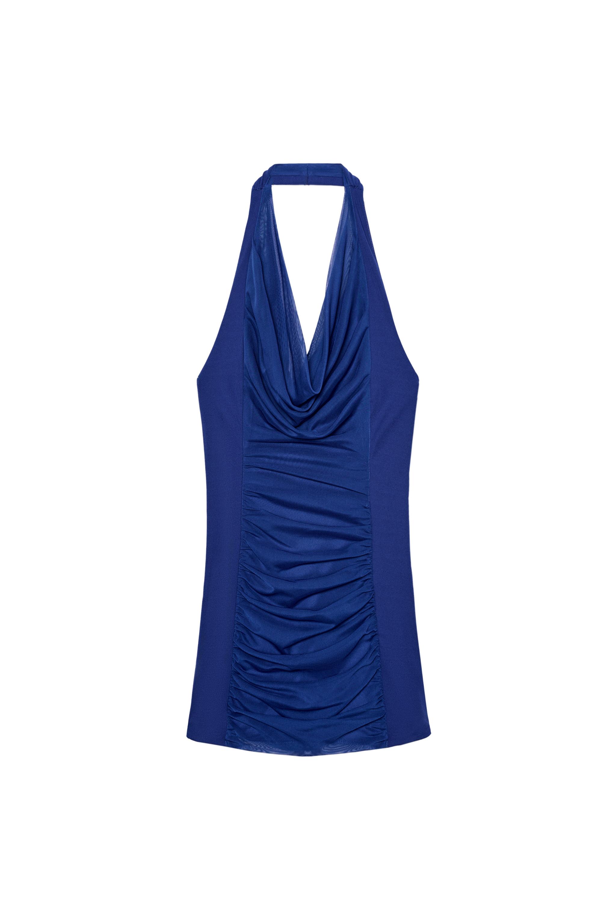 KONTRAST TÜLLÜ HALTER ELBİSE