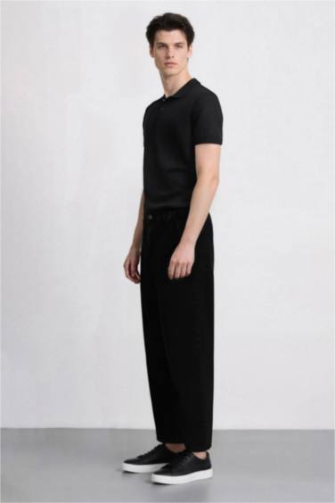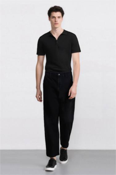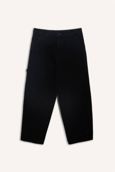 %100 Pamuk Skater Fit Geniş Kalıp Yüksek Bel Geniş Paça Siyah Jean Pantolon