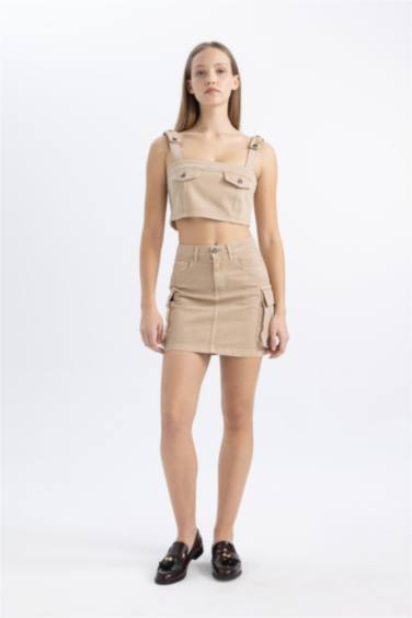 Kargo Fit Gabardin Yıkamalı Soluk Efektli Mini Etek