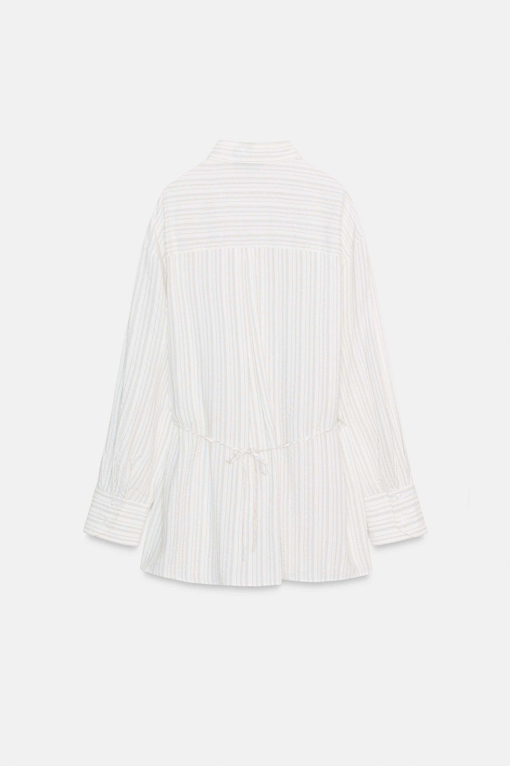 KEMERLİ UZUN ÇİZGİLİ GÖMLEK