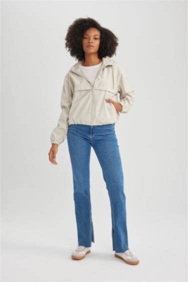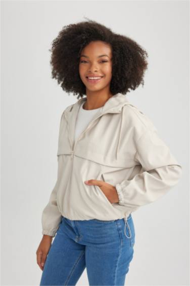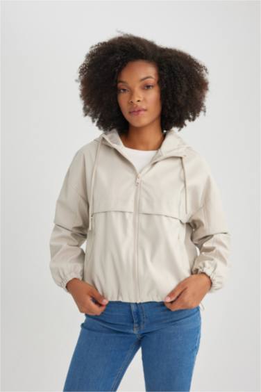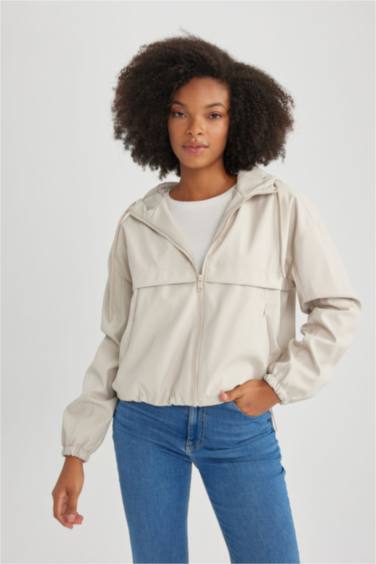 Su İtici Regular Kalıp Kapüşonlu Fermuarlı Kısa Yağmurluk