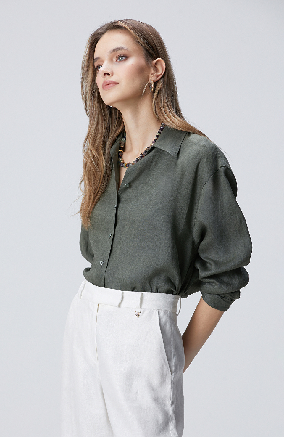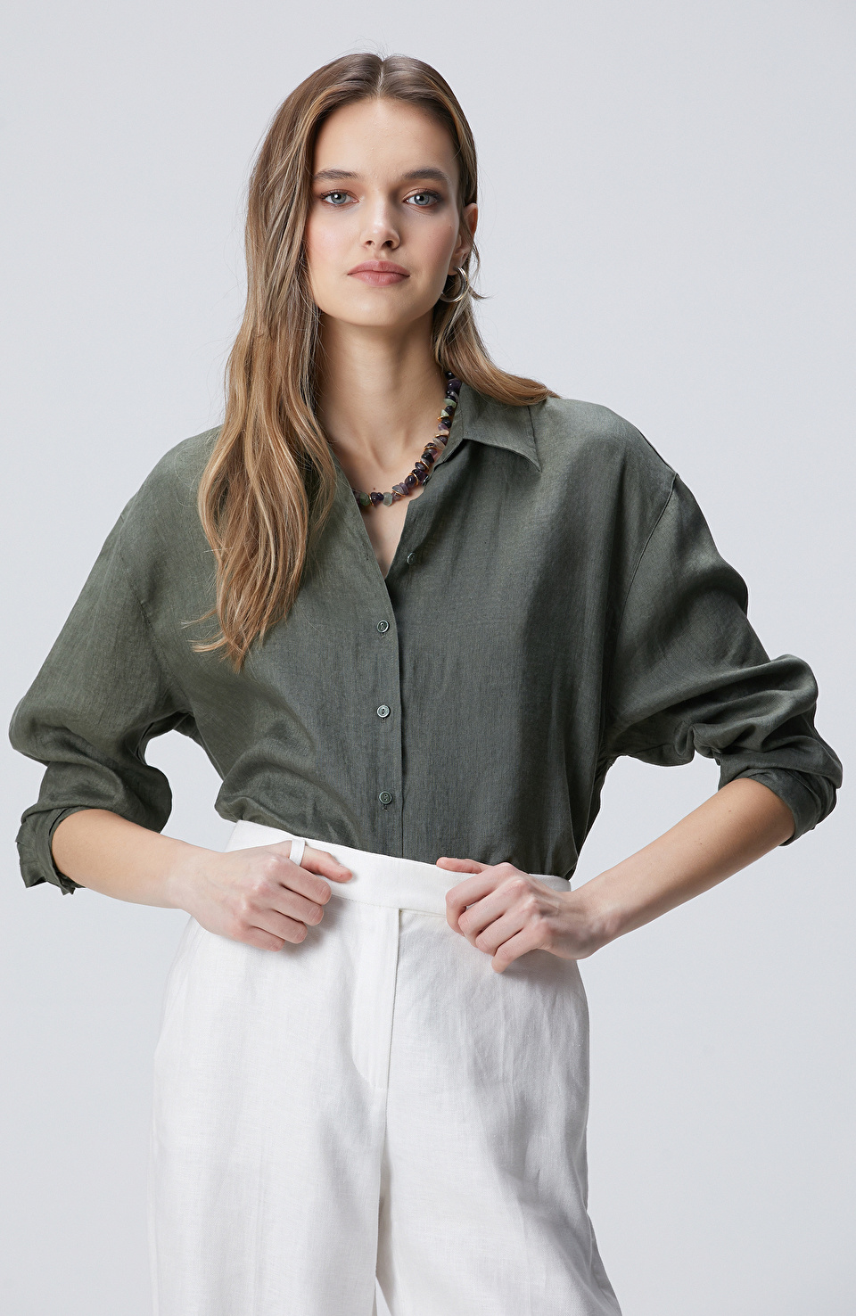 Haki Keten Gömlek