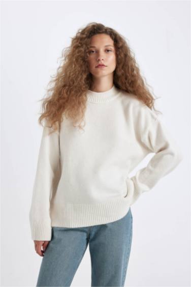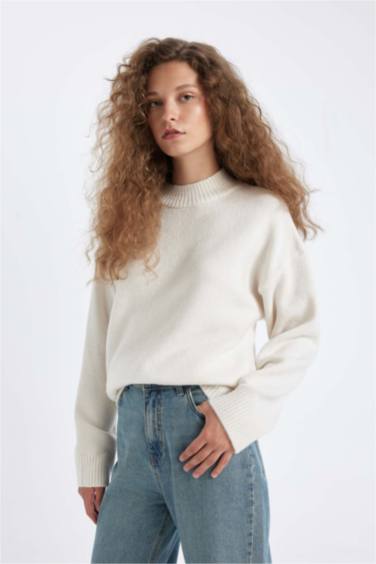 Oversize Geniş Kalıp Yarım Balıkçı Yaka Uzun Triko Kazak