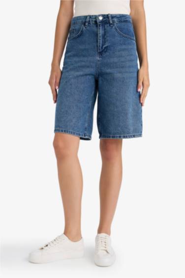 %100 Pamuk Yüksek Bel Jean Bermuda Şort