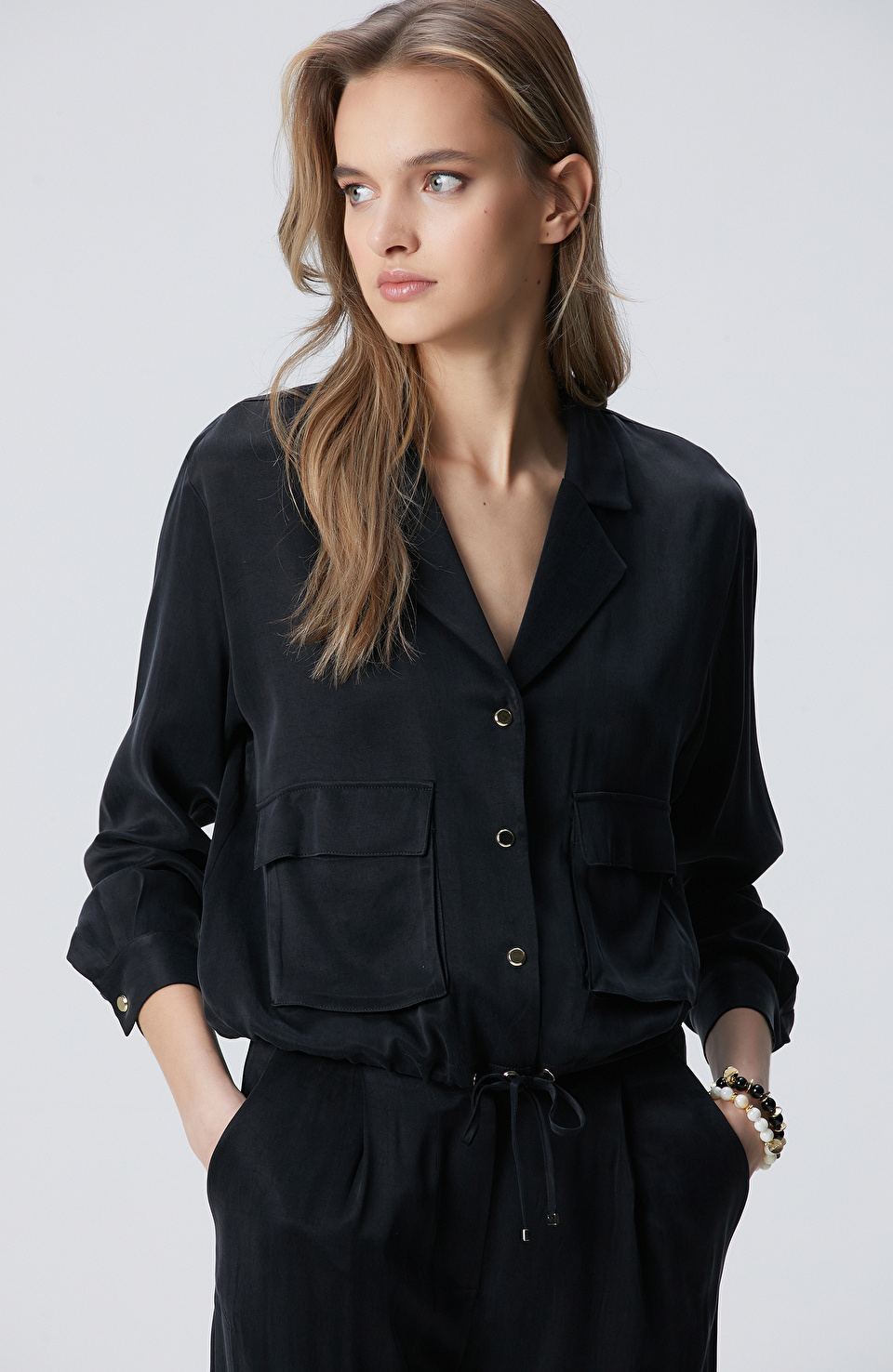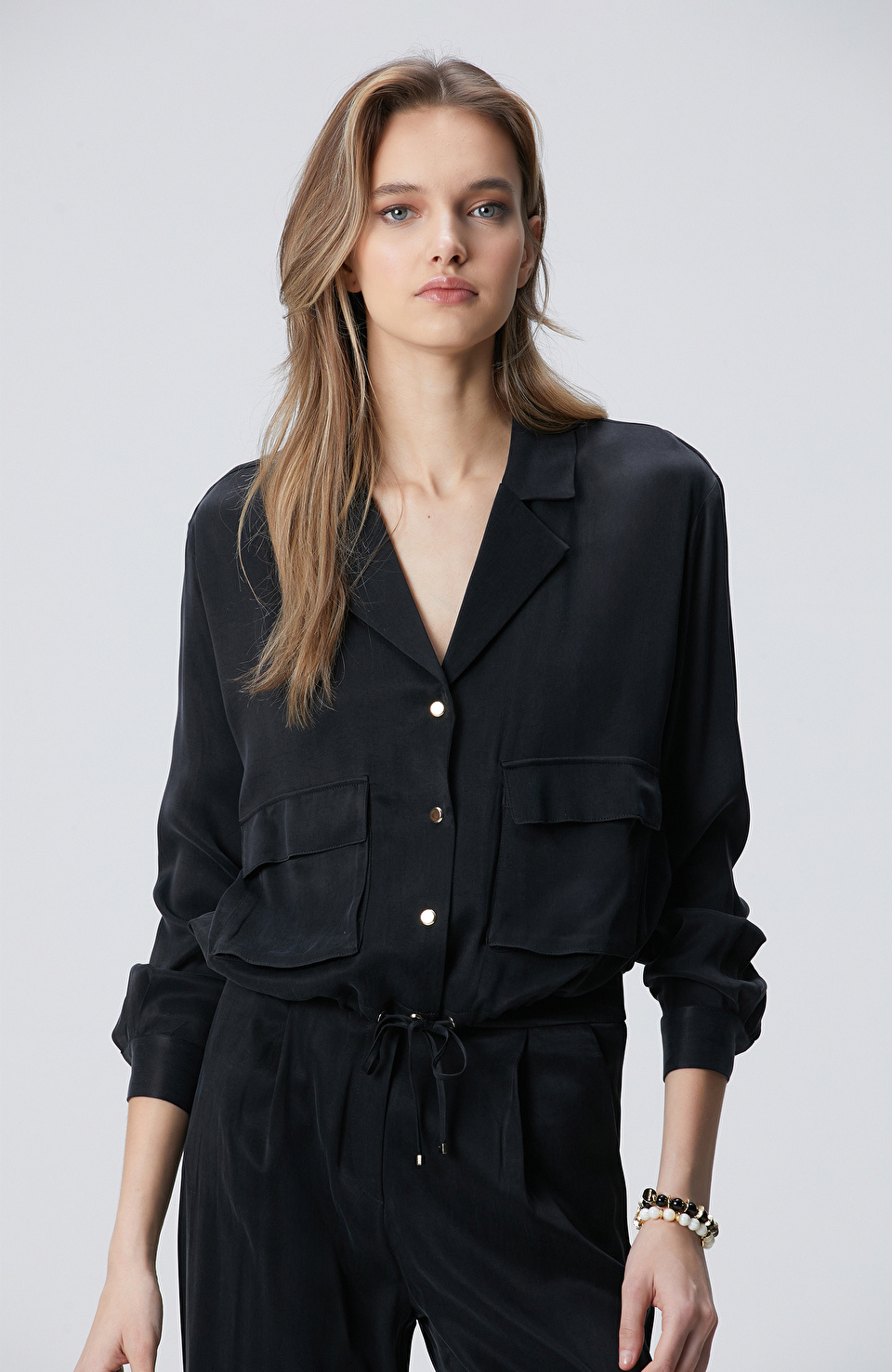Siyah Cupro Gömlek