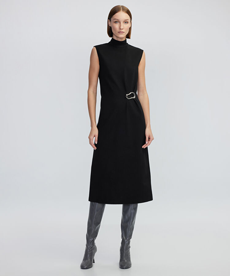Amorf metal aksesuarlı elbise