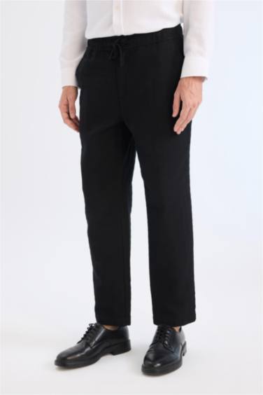 %100 Pamuk Yazlık Jogger Pantolon Regular Fit Normal Kesim Keten Görünümlü Düz Paça Cepli