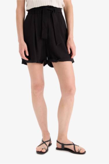 Yüksek Bel Krinkıl Kumaş Şort