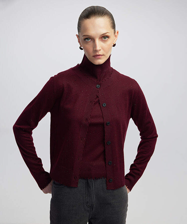 Hotfix baskılı raw edge hırka