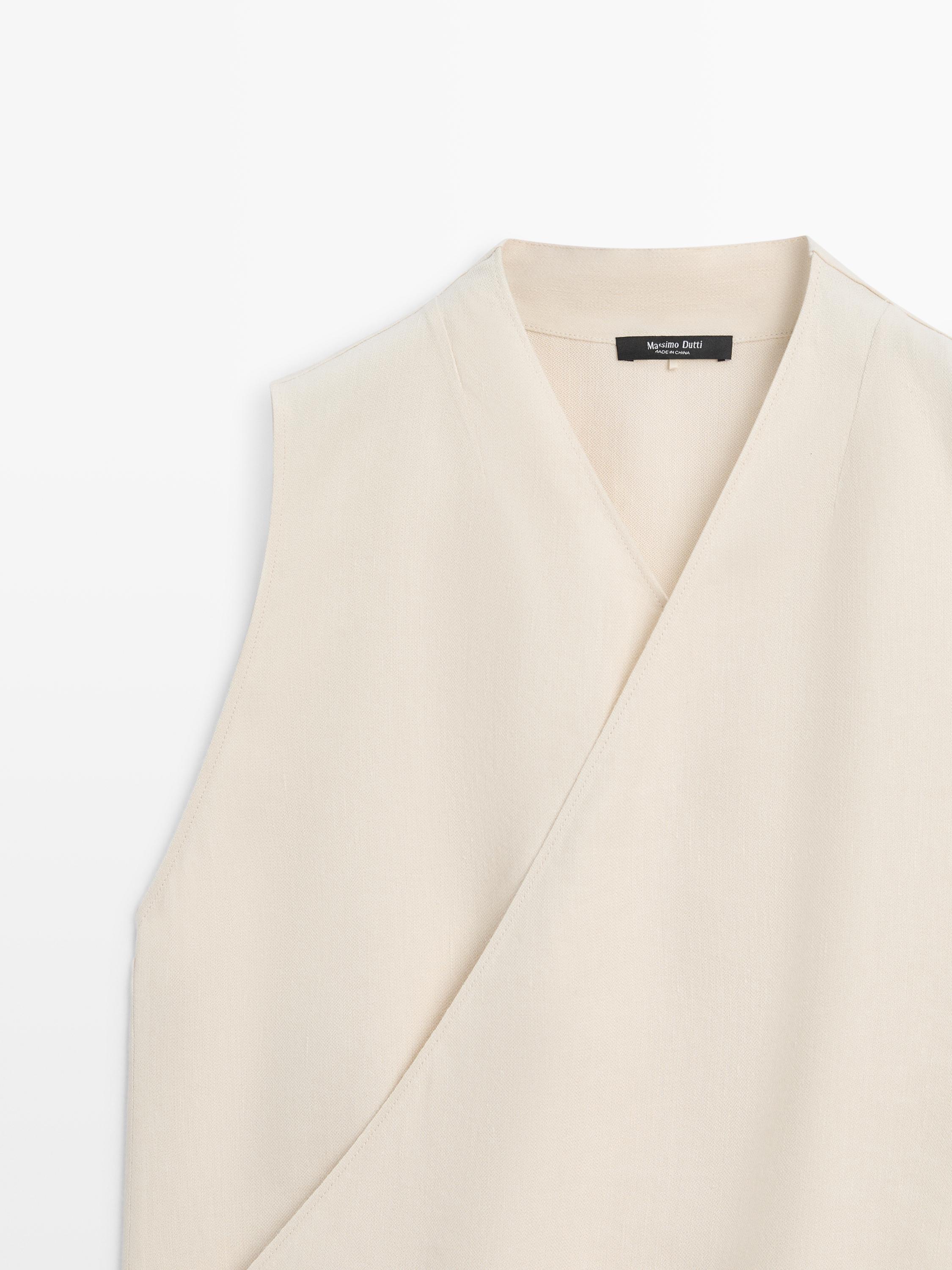 Keten karışımlı dökümlü kruvaze top