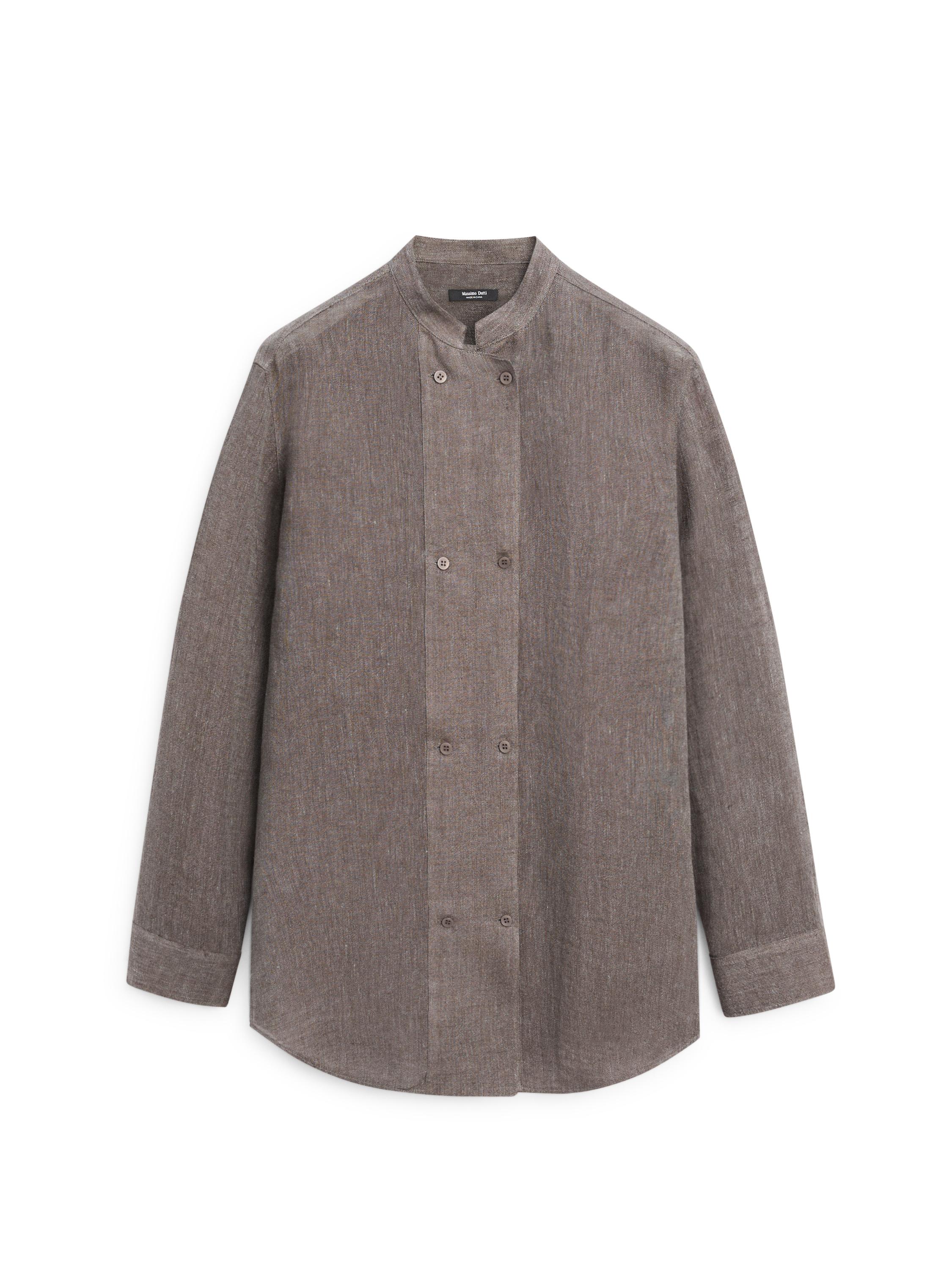 Düğme detaylı dökümlü keten karışımlı gömlek