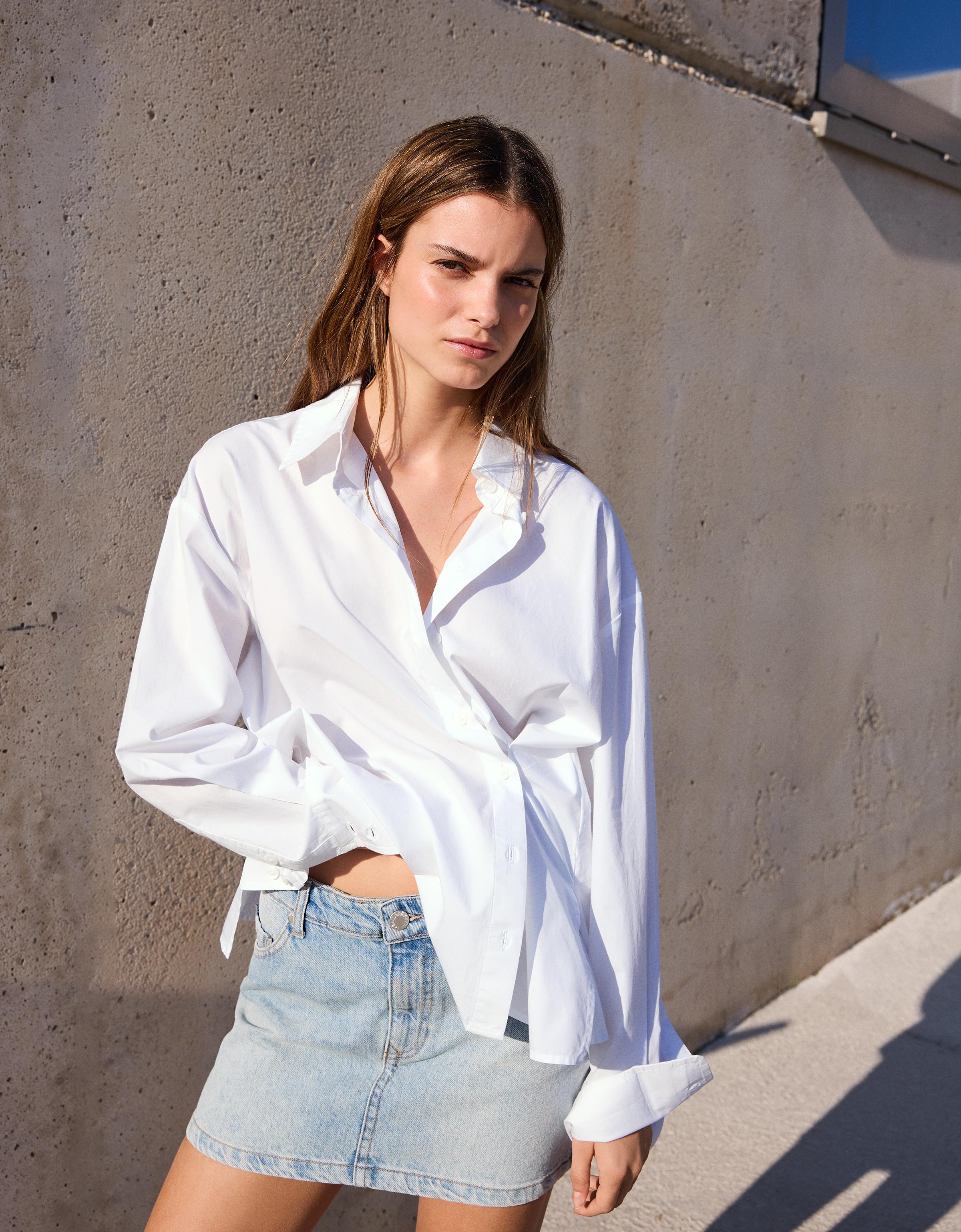 Uzun kollu kruvaze düğmeli gömlek — bershka | Oneri