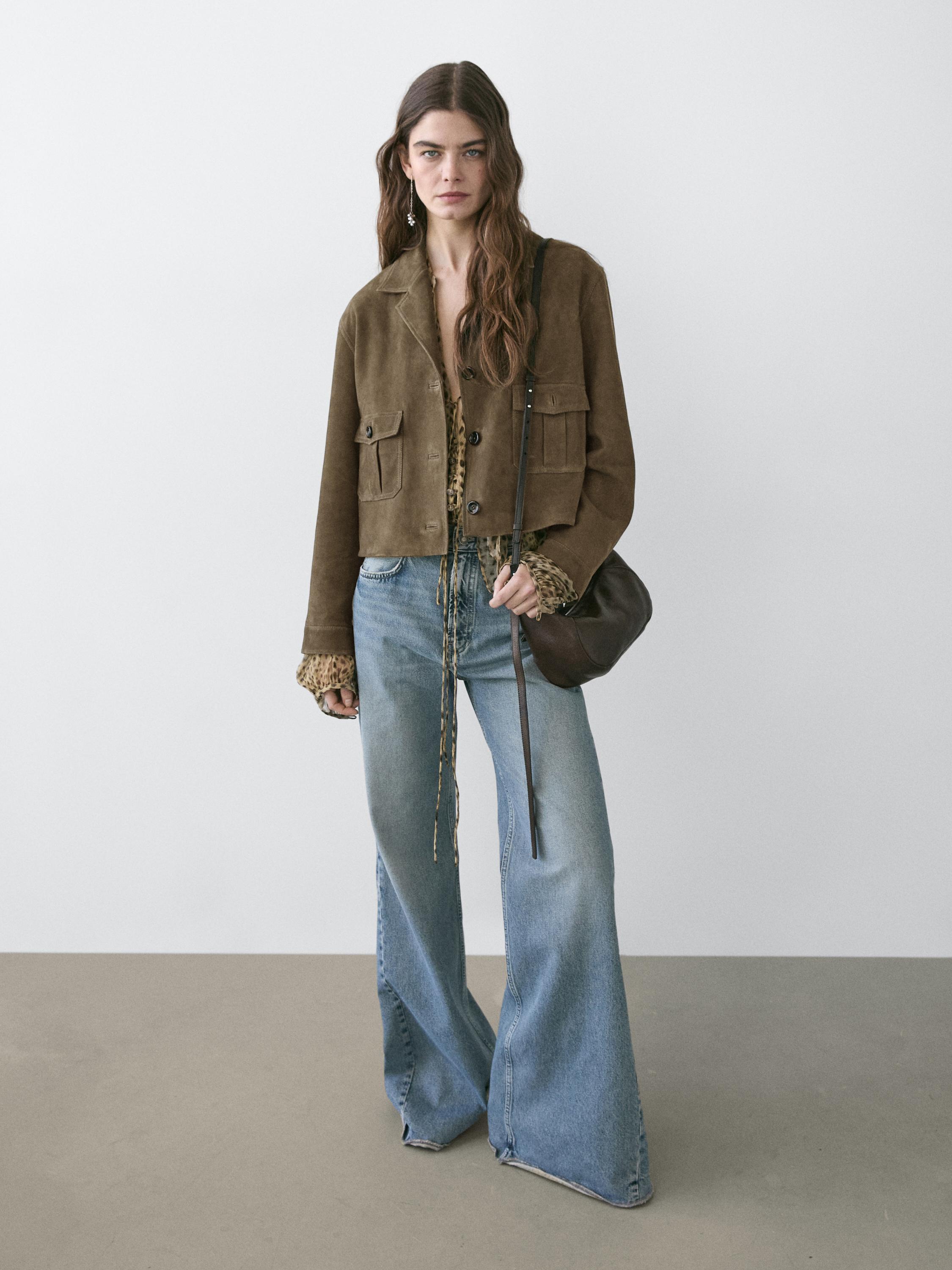Ajurlu **Ipekyol** triko ile **Stradivarius** siyah geniş paça pantolonun minimalist uyumu — üzerine **Network** süet sneaker tamamlıyor.