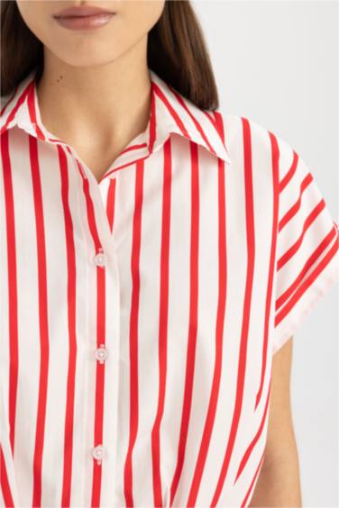 Crop Çizgili Kısa Kollu Poplin Gömlek