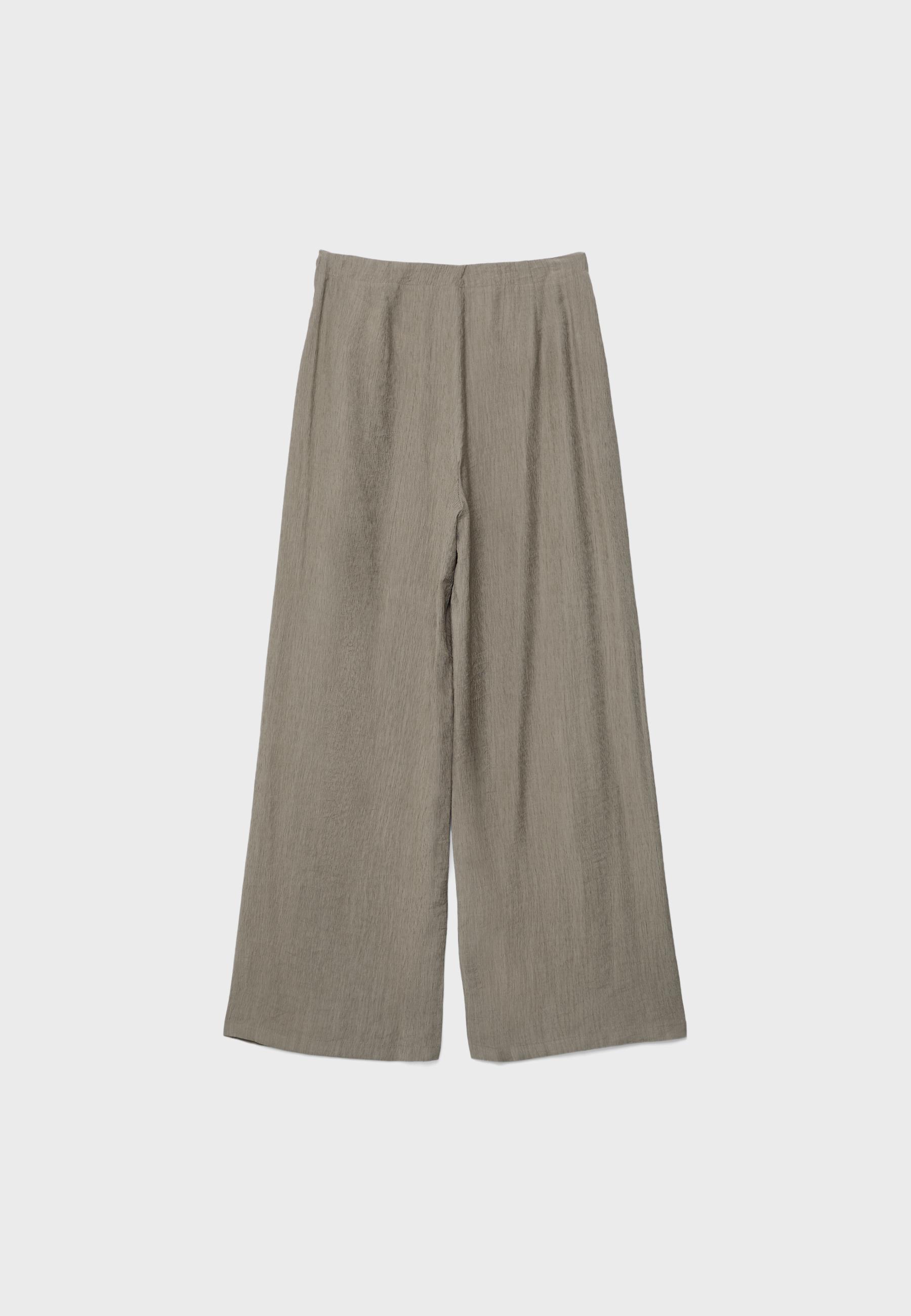 Olive ve beige tonlarında dökümlü bir pareo pantolon, temiz hatlara sahip ve rahat bir kesime sahip. Daha az parca ile daha fazla etki yaratma prensibine sadık kalan bir tasarımdır. Uzun gövdeli tipler için idealdir; hafif düşey çizgileri vücut hatlarını dengeler. Bahar ve yaz aylarında günlük kullanım için harika bir seçimdir, aynı zamanda ofis sonrası bulușmalarda da sade ve zarif bir görünüm sunar. Beyaz tisörtle ve yüksek bel jeans ile kombinleme yapabilirsin; bu tarzda hem şıklık hem de rahatlama sağlar. Aynı zamanda açık renkli bluzlarla da oldukça iyi durur. Siyah deri kemer ve beyaz sneaker ile tamamlayarak gün içinde farklı formlara geçiş yapabilirsin. Katlanmadan asmalı, nemli ortamlardan uzak tutmalı, iç katman olarak da kullanılabilir. Zamanın ötesinde bir parça, her zaman uygun olacak bir stil seçeneği.