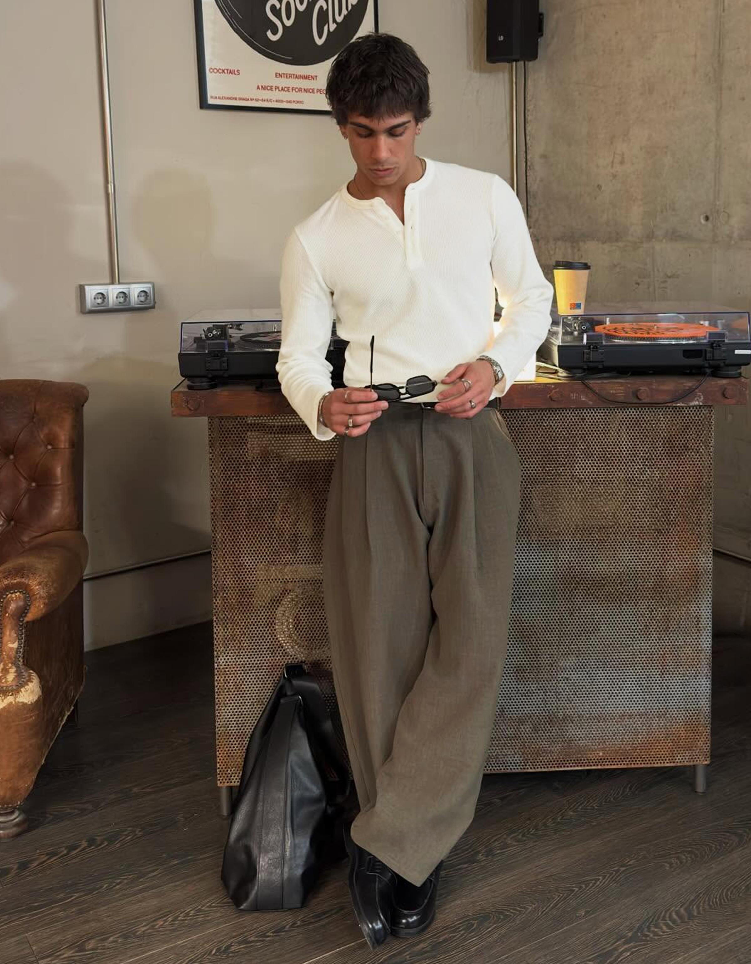 Bu uzun kollu henley, temiz ve dengeli bir tasarıma sahip. Slim fit kesimiyle vücut hatlarını hafifçe vurgularken, aynı zamanda rahatlık sağlıyor. Off-white ve olive renk seçenekleri, kapsül gardirop için ideal bir ek oluyor. Uzun govdeli tipler için idealdir çünkü omuz hizasında bir denge oluşturur. Kolları hafifce kısalıkta olduğundan, kısa bacaklı tiplerin de rahatça giyebildiği bir model. Gündüz saatlerinde ofis-sonrası bulusmalarda veya haftasonu şehir gezilerinde uygun bir seçeneğiniz olacak. Beyaz tisortle ve yuksek bel jean ile kombinleme yapabilirsiniz; bu klasik ama şık bir görünüm sunar. Aynı şekilde, siyah bir pantolonla da daha ciddi bir hale getirebilirsiniz. Renk olarak off-white, bej, krem gibi notr tonlarla uyumlu olurken, olive ise daha sert bir dokunuş katar. Siyah deri kemer ve beyaz sneaker ile tamamlayabilirsiniz. Kurutma makinesine koymadan asılı tutmak, kumaşın kalitesini korumada en iyi yol. İç katman olarak da kullanılabilir, böylece çok yönlü bir parca olur.