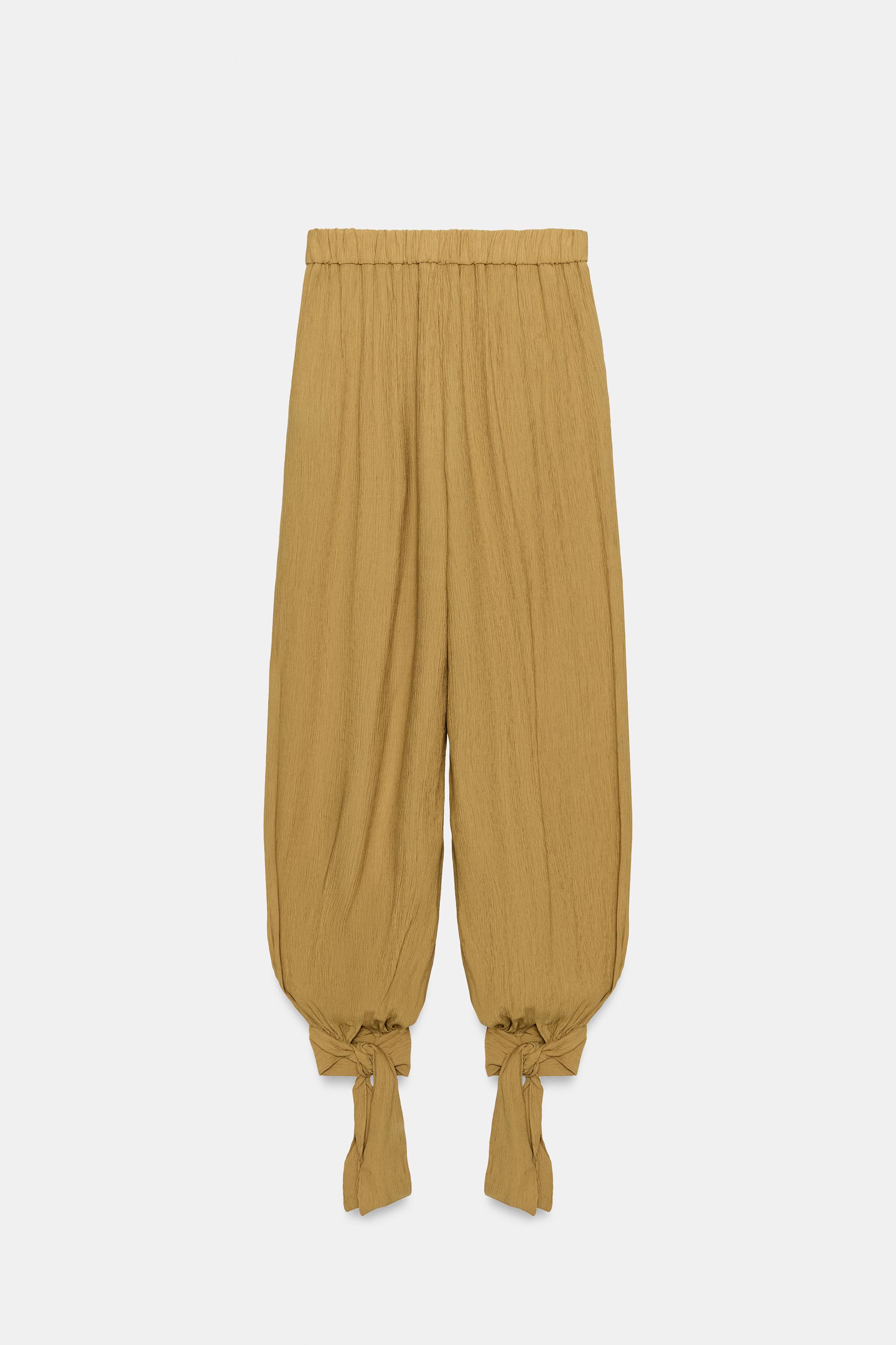 Camel rengi bağcıklı şalvar pantolon, her gün giyilebilir ama aynı zamanda dikkat çekici bir dokunuş sunan bir parca. Uzun govdeli tipler icin idealdir; vucudunuzu dengeli ve hafif bir gozume kavusturur. Kombinleme konusunda esneklik saglar: beyaz tisortle ve yuksek bel jean ile rahat bir casual look olusturabilirsin; ya da etekli bir bluzla daha cok bohemian bir hava yaratabilirsin. Renk uyumu olarak siyah deri kemer ve beyaz sneaker ile tamamlayabilirsin. Giyim amacina gore ofis-sonrasi bulusmalarda veya yurt ici tatillerde kullanabilirsin. Katlanmadan asmali, nemli ortamlardan uzak tutmali. Ic katman olarak da kullanılabilir, baska parcalarla kolayca kombinlenebilir.