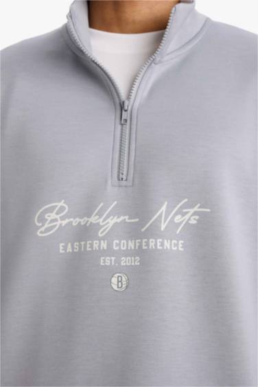 NBA Brooklyn Nets Boxy Fit Dik Yaka Fermuarlı Sırt Baskılı Skuba Dalgıç Kumaş Sweatshirt