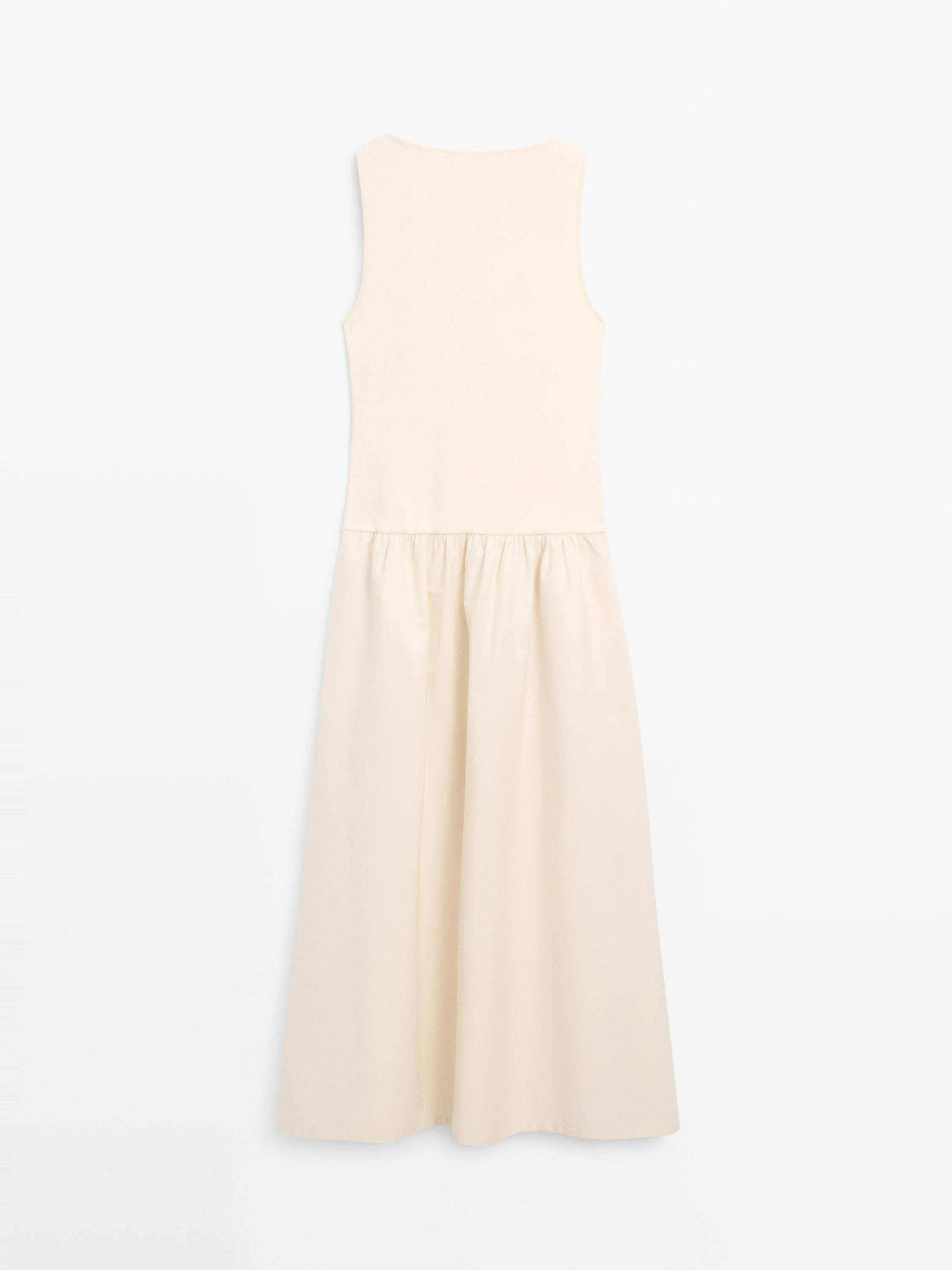 Bu poplin elbise, temiz ve dengeli bir estetikle dikkat çeker. Uzun govdeli tipler için idealdir; gövde hattını vurgularken aynı zamanda rahatlık sağlar. Beyaz tisortle ve yuksek bel jeans ile kombinleme, günlük yaşamda zarif bir casual tarz oluşturur. Aynı zamanda ofis-sonrasi bulusmalarda da uygun olabilir; düz bir bluz ve siyah deri kemerle daha şık bir görünüm elde edilebilir. Renkleri notr olduğu için diğer aksesuarlara kolayca uyum sağlar; beyaz sneaker veya açık renk ayakkabılarla tamamlayabilirsiniz. Daha sade bir look isterseniz iç katman olarak da kullanabilir, üzerine açık renk bir blazer veya ince bir kazak ekleyebilirsiniz. Kuru temizleme önerilir; katlanmadan asmali tutarak dokunuşunu koruyabilirsiniz.